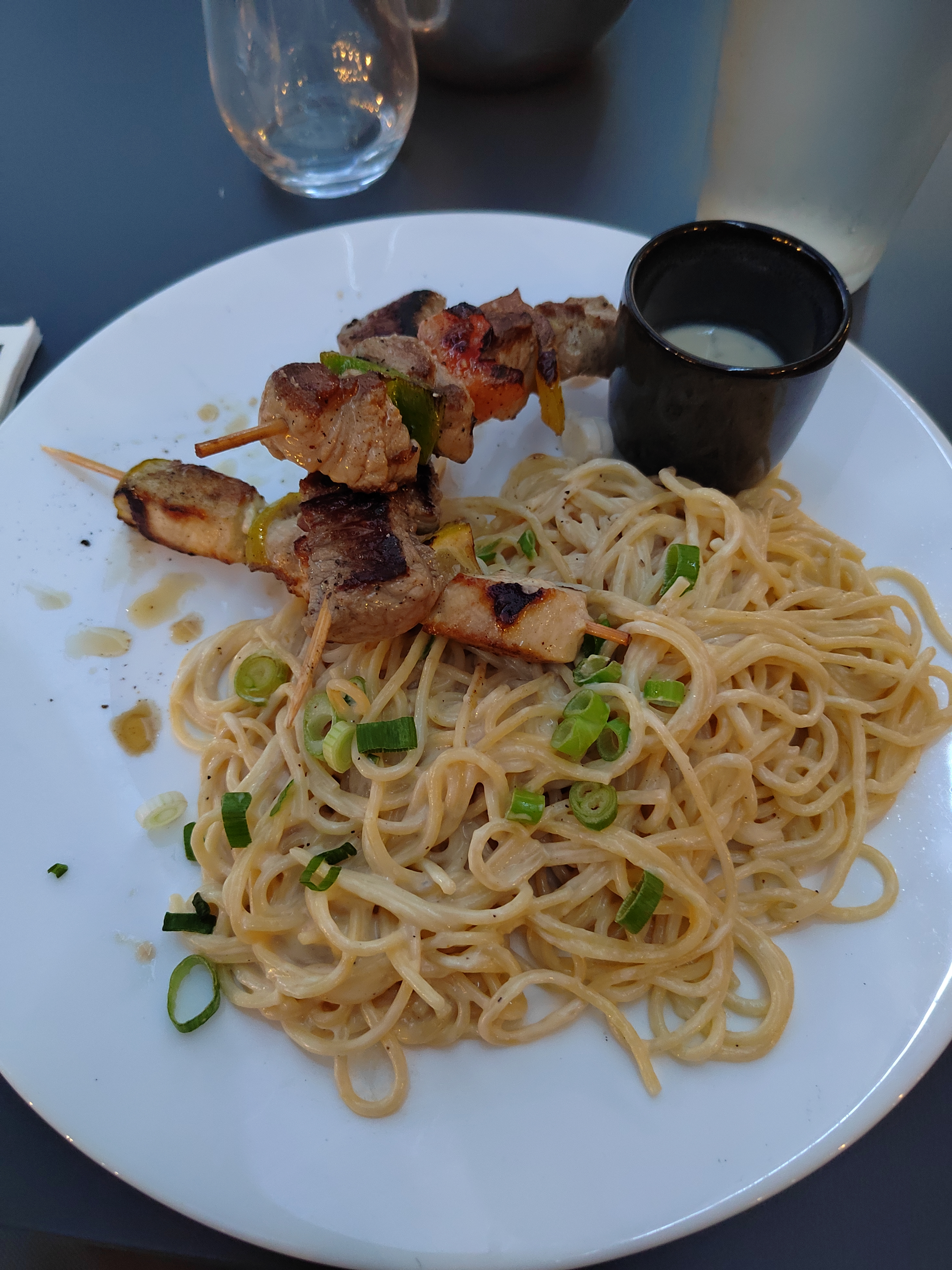 Belle décoration du restaurant et personnel agréable mais beaucoup trop cher pour ce que c'est... Le rapport qualité/quantité/prix n'est pas au rendez vous. 86 euros pour trois personnes sans entrée et dessert. La première : une assiette avec une mozzarella et une salade a 20 euros. La deuxième assiette était un morceau de bavette aussi gros que ma main avec des frites et une sauce chorizo le tout aussi a 20 euros et la troisième était des spaghettis sautés au wok avec de l'huile d'olive, de la ciboulette hachée et des petits morceaux de poulpes grillés pour 20 euros. Pour finir la bouteille de rosé était à 26 euros. Au final nous sommes sortis de table avec l'estomac à moitié rempli sans réelle expérience culinaire. J'espère que cela s'améliorera pour vos prochains clients et votre restaurant ! Cordialement.