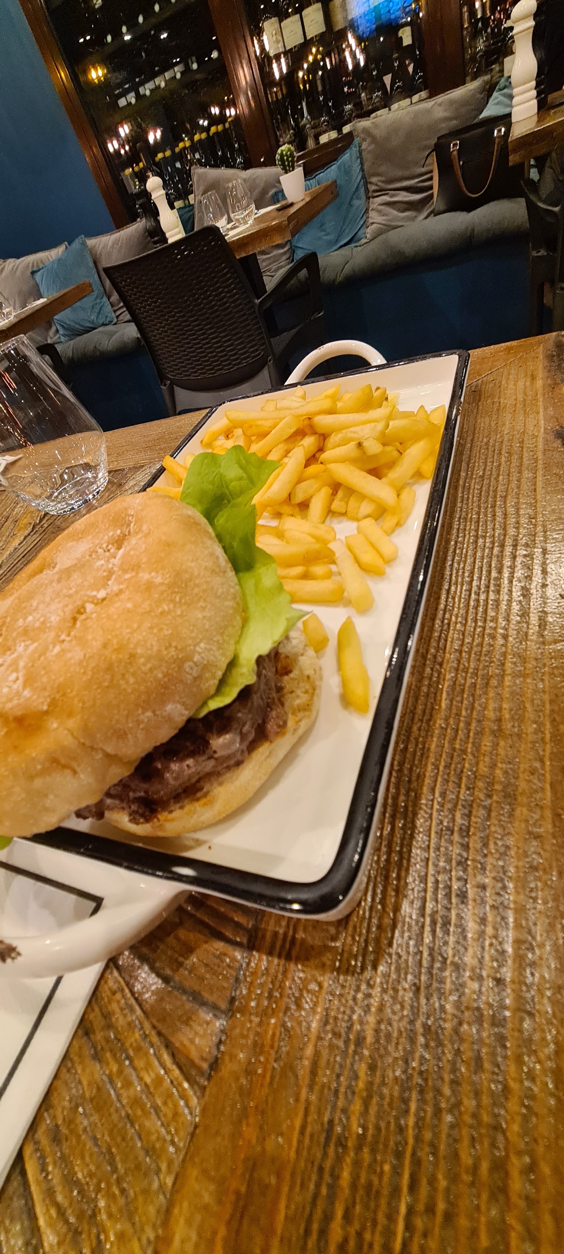 super ambiance , calme , serveur très sympathique et aimable ! Les plats étaient excellent rien à dire ; pour l’entrée des pommes de terre avec une sauce bravas ( pour ceux qui ont peur du piquant ! très légère et super bonne ) et pour le plat, un burger de canard, millassou , chèvre et un pain à burger excellent ! je conseille ce restaurant fortement !!! Pas mal de choix niveau plats (viandes ) mais aussi pas mal de choix au niveau des vins 😉! Nous reviendrons avec grand plaisir !