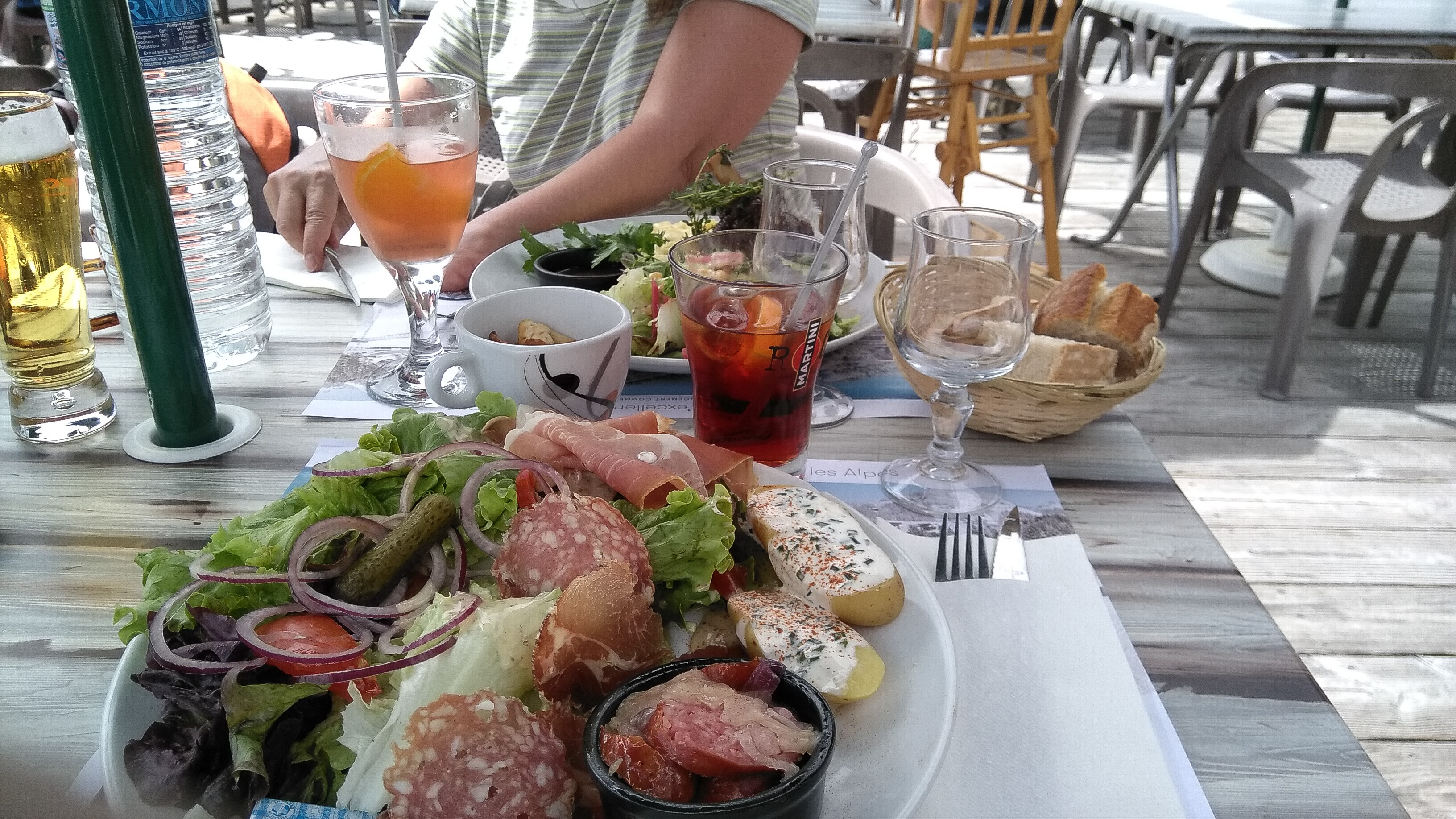 Temps d'attente anormalement long pour de la nourriture simple. Chouette vue sur le Mont Blanc.