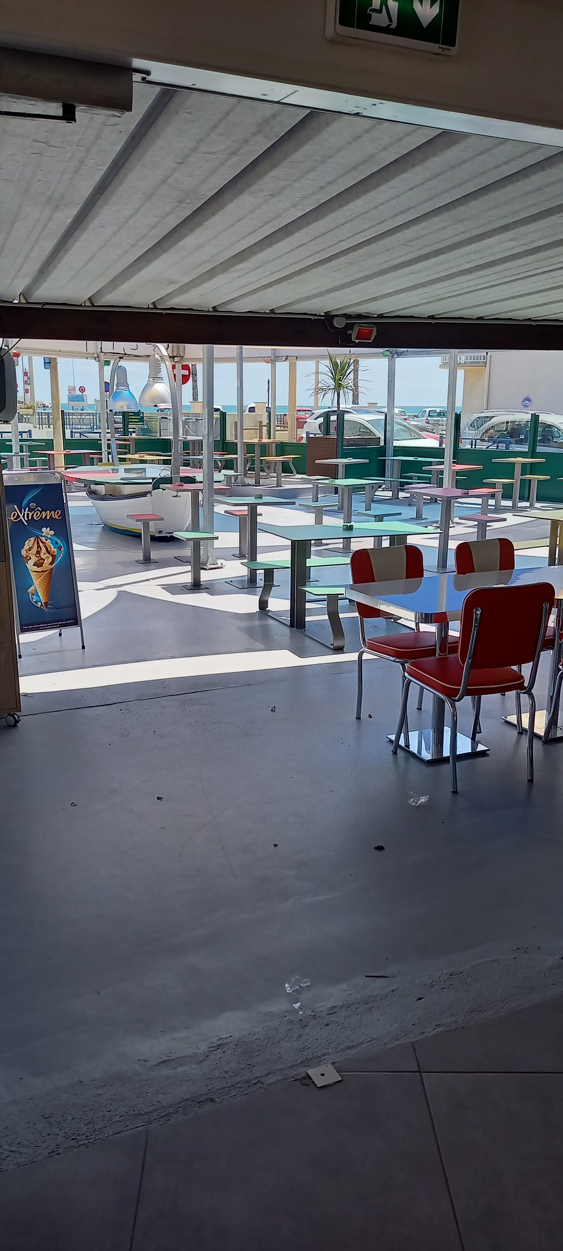 L'équipe super simpas Service rapide Lieux propre et WC propre Restauration rapide mais bonne en bord de plage le decord et vraiment simpas et vintage .