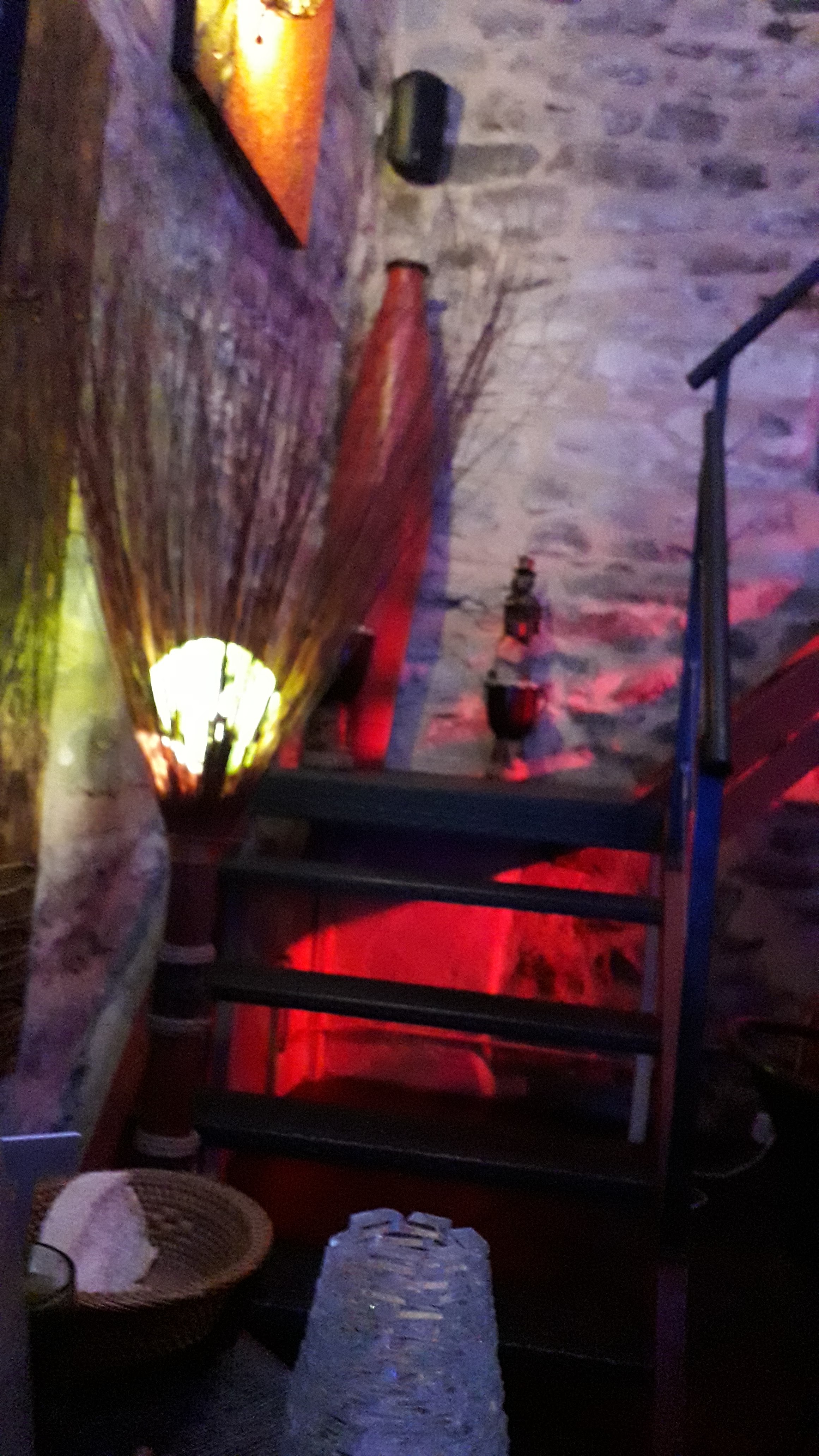 Le cadre est beau original en revanche très cher piur ce que l'on mange Une brochette avec 1 petit gambas style crevette 1 petit morceau de seuche et 1 petit morceau se saumon accompagné de riz et d un petit bol de salade en dessert 1 morceau de gâteau à la broche et une boule de sorbet et 3 petits tas de chantilly le tout 29 euros à rajouter le vin et le café . A noter que le pain n est même pas bon de la vulgaire baguette industrielle Sur la carte était mentionné frites j aurai préféré que le riz . Bref très déçue du repas .