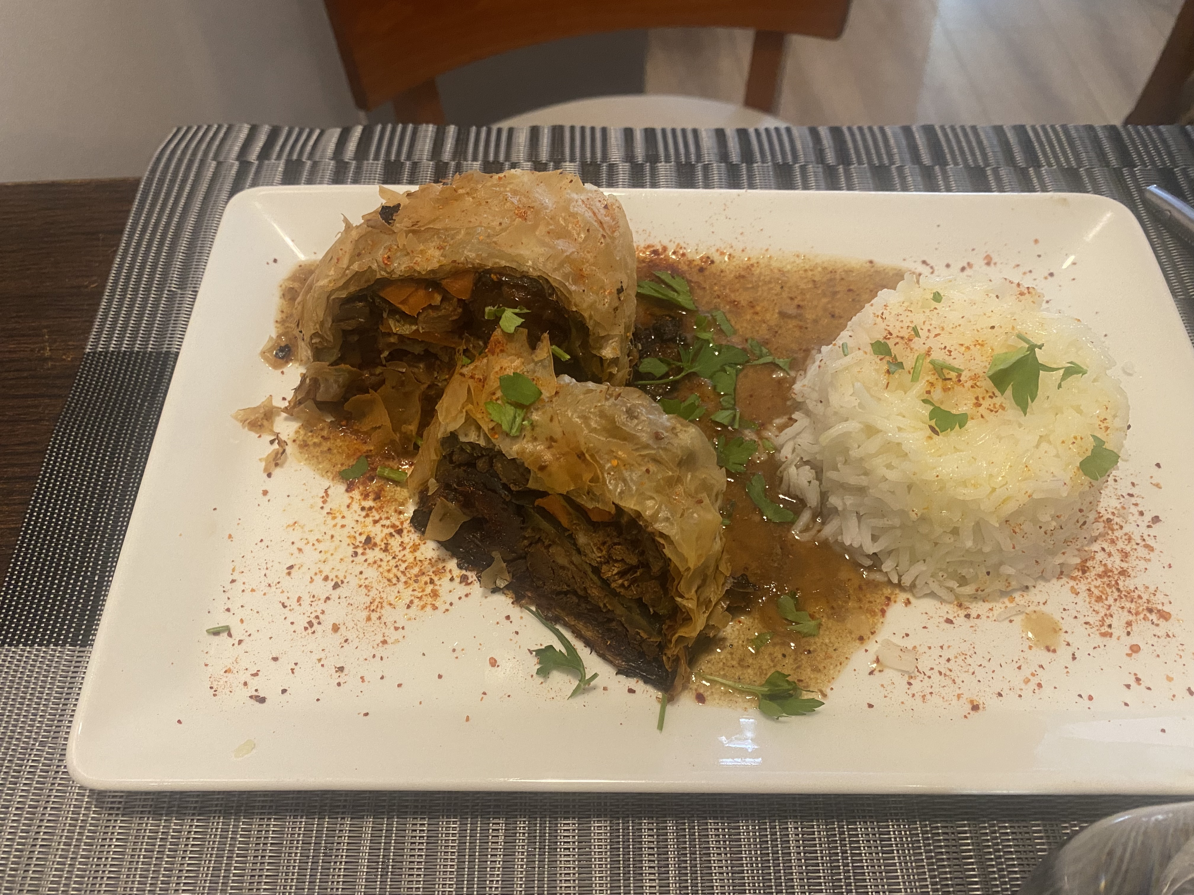 Très belle découverte, très bon du plat au thé à la menthe, le patron très accueillant , attentionné et au petit soin pour ces clients ,une serveuse très gentille. Je recommande 👍👍👍(Très jolie décoration).Les plats sont toujours très bons et copieux. Je ne compte plus les fois où j'y suis allée manger.