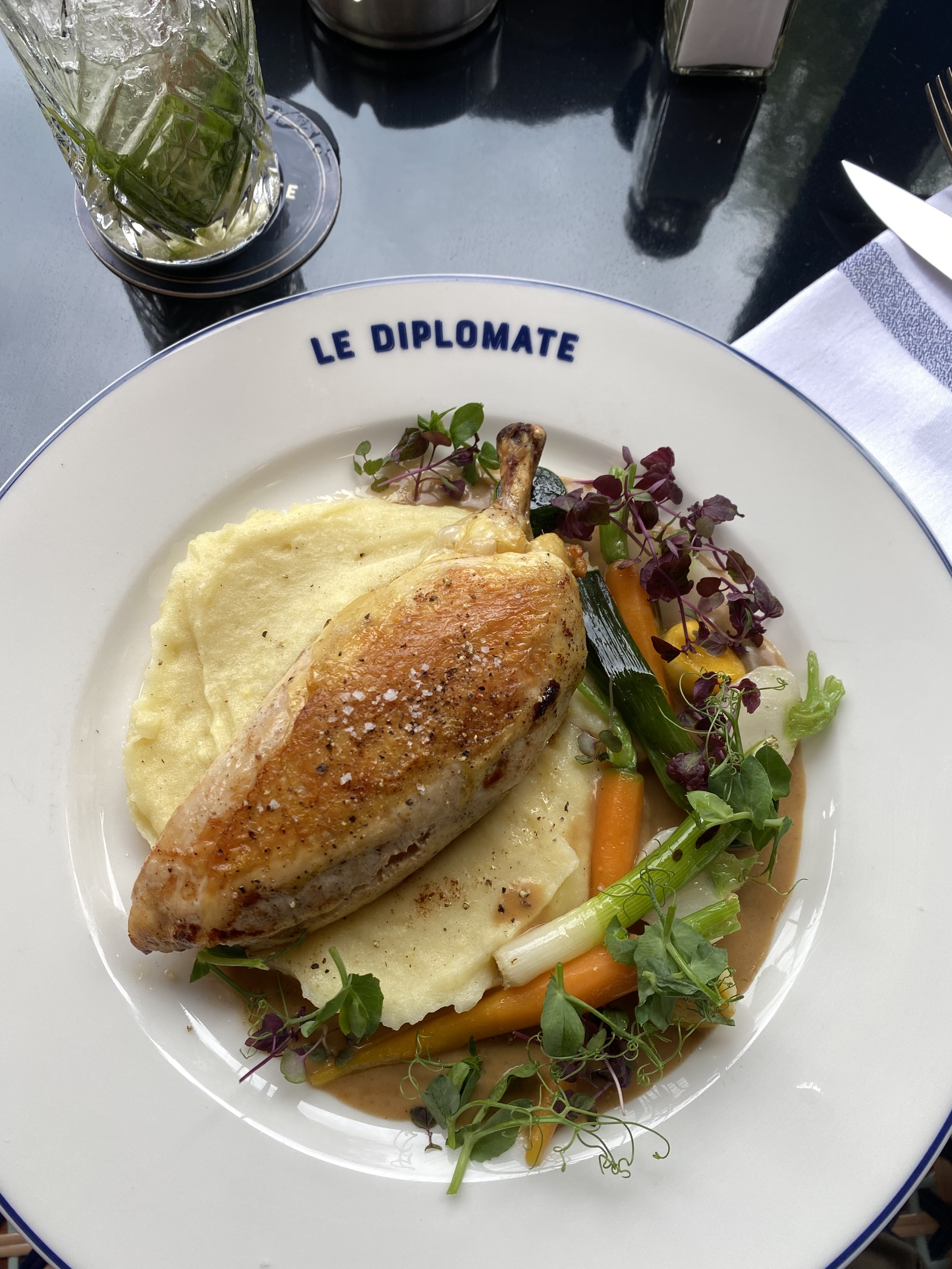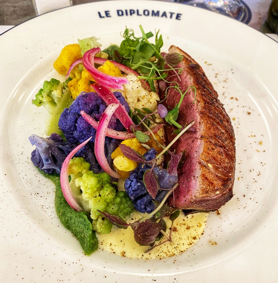 Toujours un plaisir de s’attabler au diplomate. En salle ou en terrasse, pour manger ou boire un verre, l’accueil est chaleureux, le service irréprochable et la qualité des produits n’est plus à prouver..! Je recommande vivement.