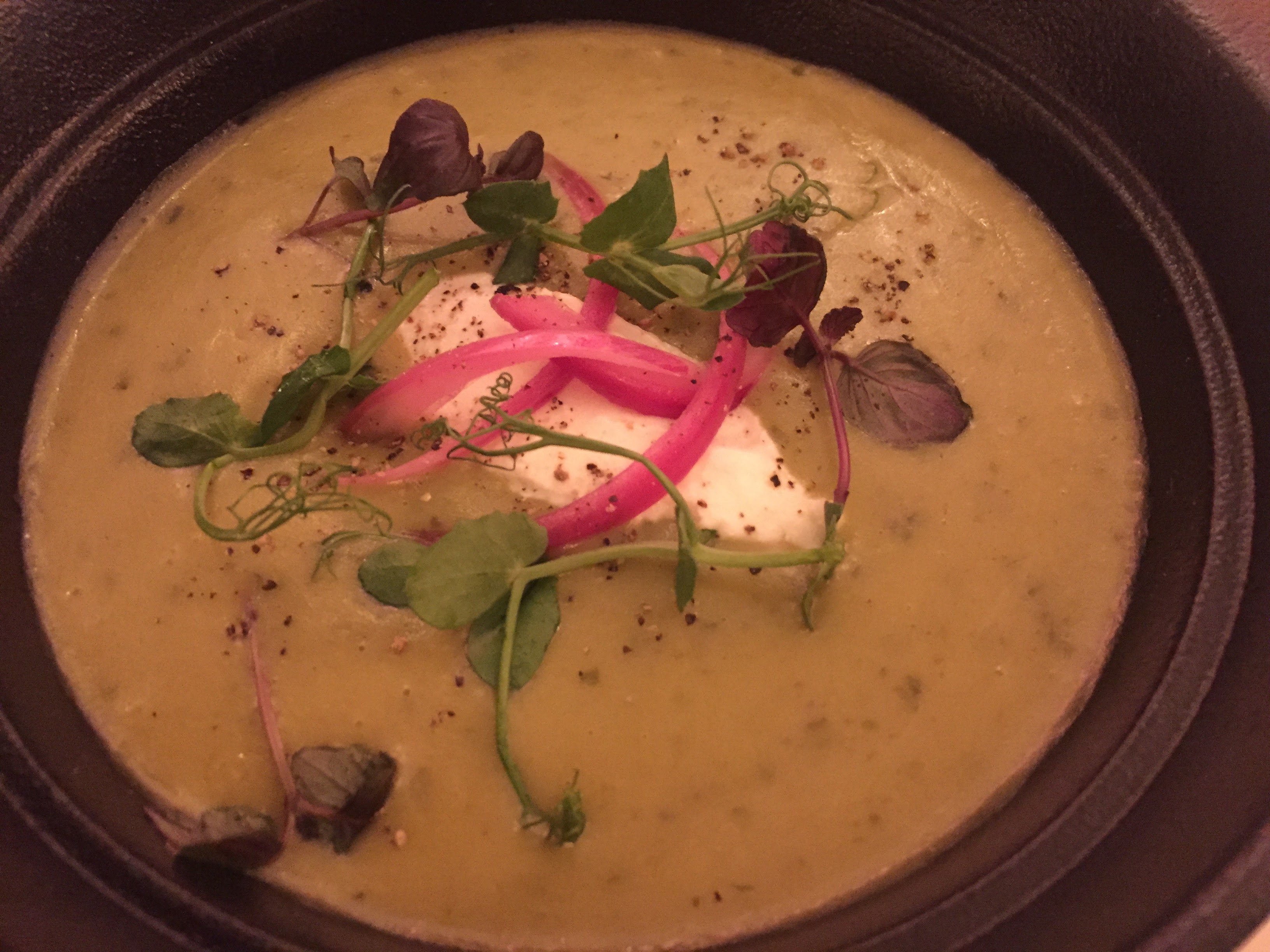 Encore un délicieux dîner ce soir au Diplomate, cette fois-ci au comptoir 😊 En effet l’apéro s’est transformé en repas tellement l’ambiance était agréable... L’entrée du jour, un velouté de cresson & fanes de radIs accompagné de radis pickles et de brocciu, pour mon épouse (qui aurait aimé plus de cresson...) et le gravlax bowl, saumon mariné par nos soins, avocat, carottes et choux rouges en saumure, riz, sauce au miso blanc pour moi. Puis le dessert du jour une tarte normande aux pommes avec le fameux caramel au beurre salé du Diplo ! Tout était très bon, bien présenté, frais... Le tout accompagné d’un délicieux Pinot Noir d’Alsace 🍷🍷 Le service était cool mais attentif 👍 À renouveler 😋