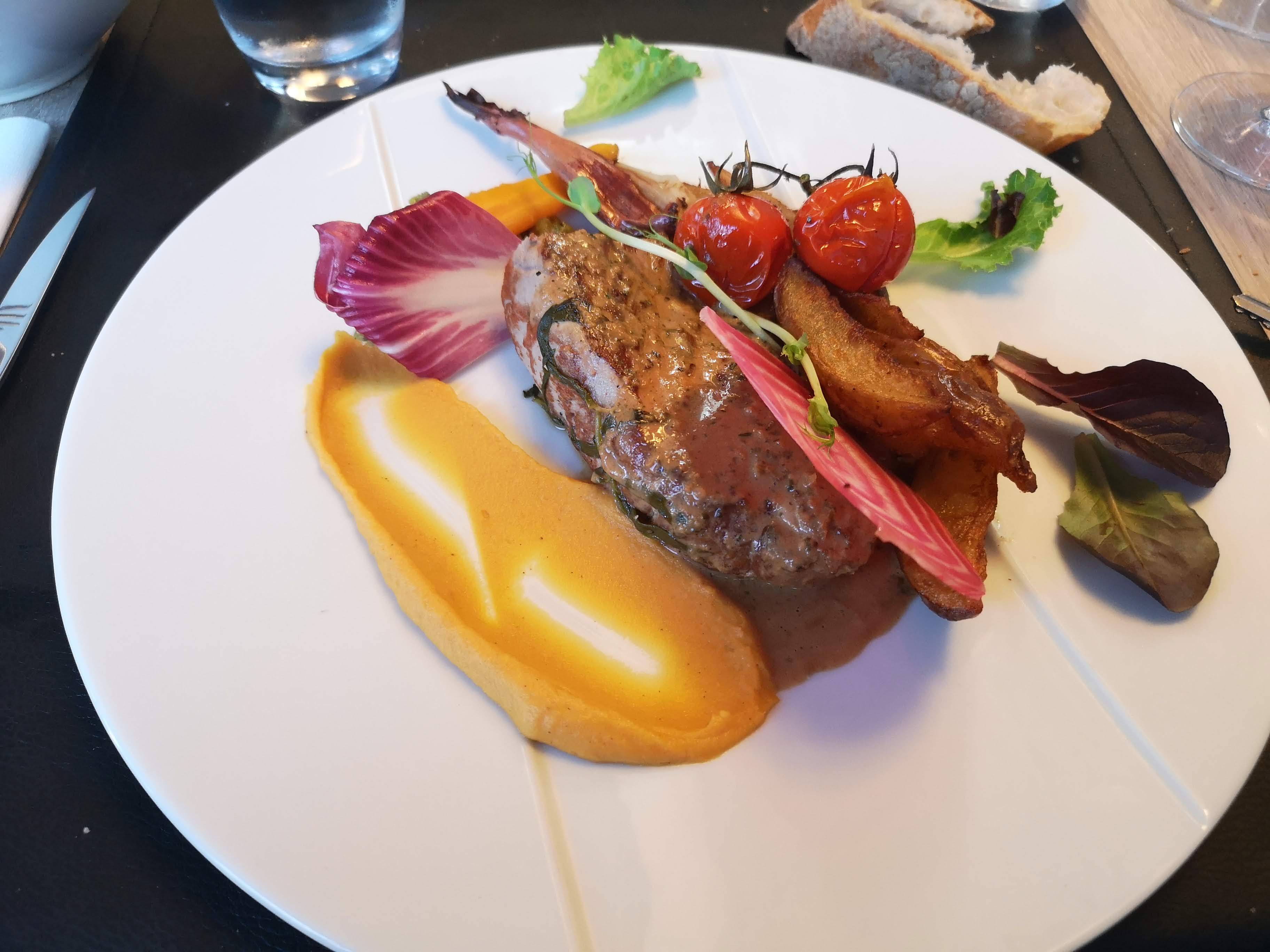 Bonsoir, Que dire de ce resto... juste un régal....autant visuel que gustatif... Arrêtés par hasard...des rognons de veau sauce au poivre vert vraiment délicieux,bravo à la cheffe... Et mon poisson du jour,un pavé de merlu servi avec son velouté de buternut et lard fumé...j'en salive rien qu'à y penser... Et les vins à la hauteur des plats... Fins gourmets , allez-y les yeux fermés...plaisir garanti... Le service du même ordre... Ragalez vous....🙂