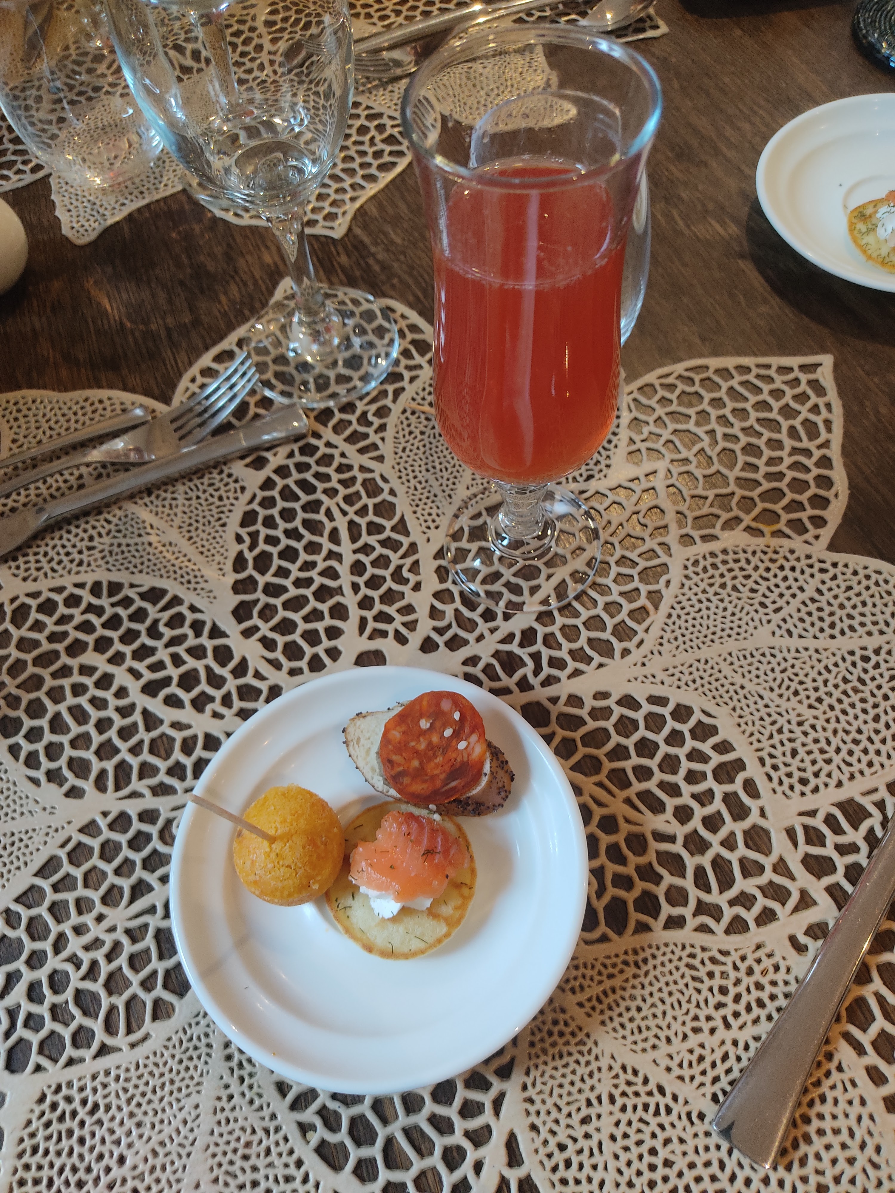 Malheureusement on nous a proposé une coupe de Champagne...moyen...sans nous préciser le prix comme si c était offert. Pour 4 = 40 e !!