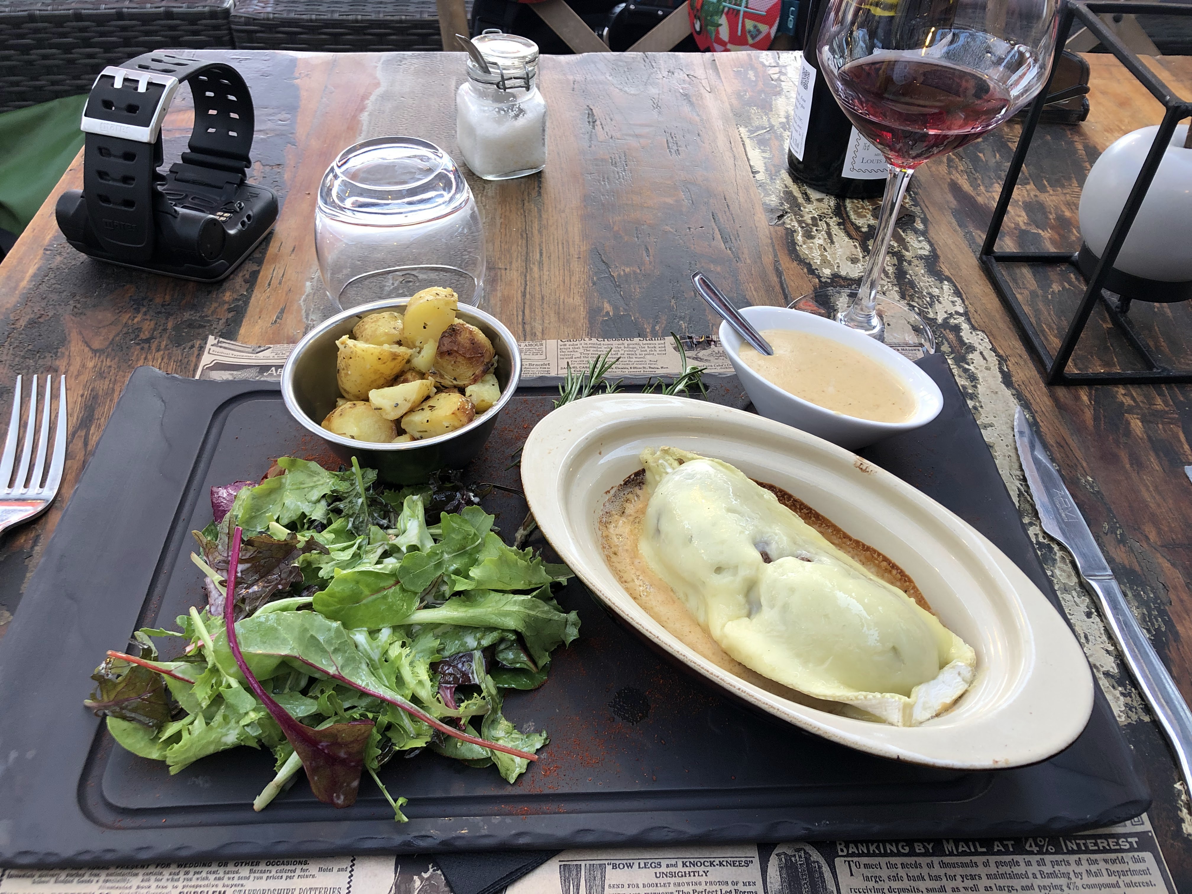 Excellent. Les planches sont délicieuses et composées de produits de qualité. Très bon accueil également. Notre chien qui nous accompagnait a eu droit à son bol d'eau fraîche.