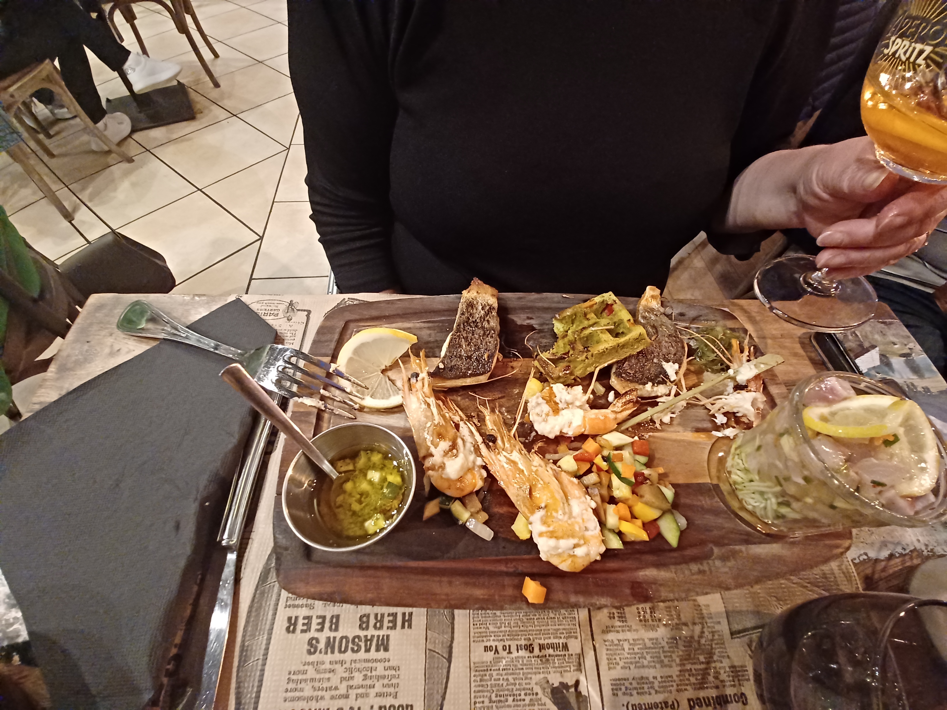 Concept du restaurant excellent. Les planches sont variées et délicieuses, surtout la côte de bœuf... Serveurs très accueillants et aimables, malgré le nombre de couverts à servir. Nous recommandons très vivement ce restaurant aux personnes qui veulent passer un moment convivial entres amis ou en famille