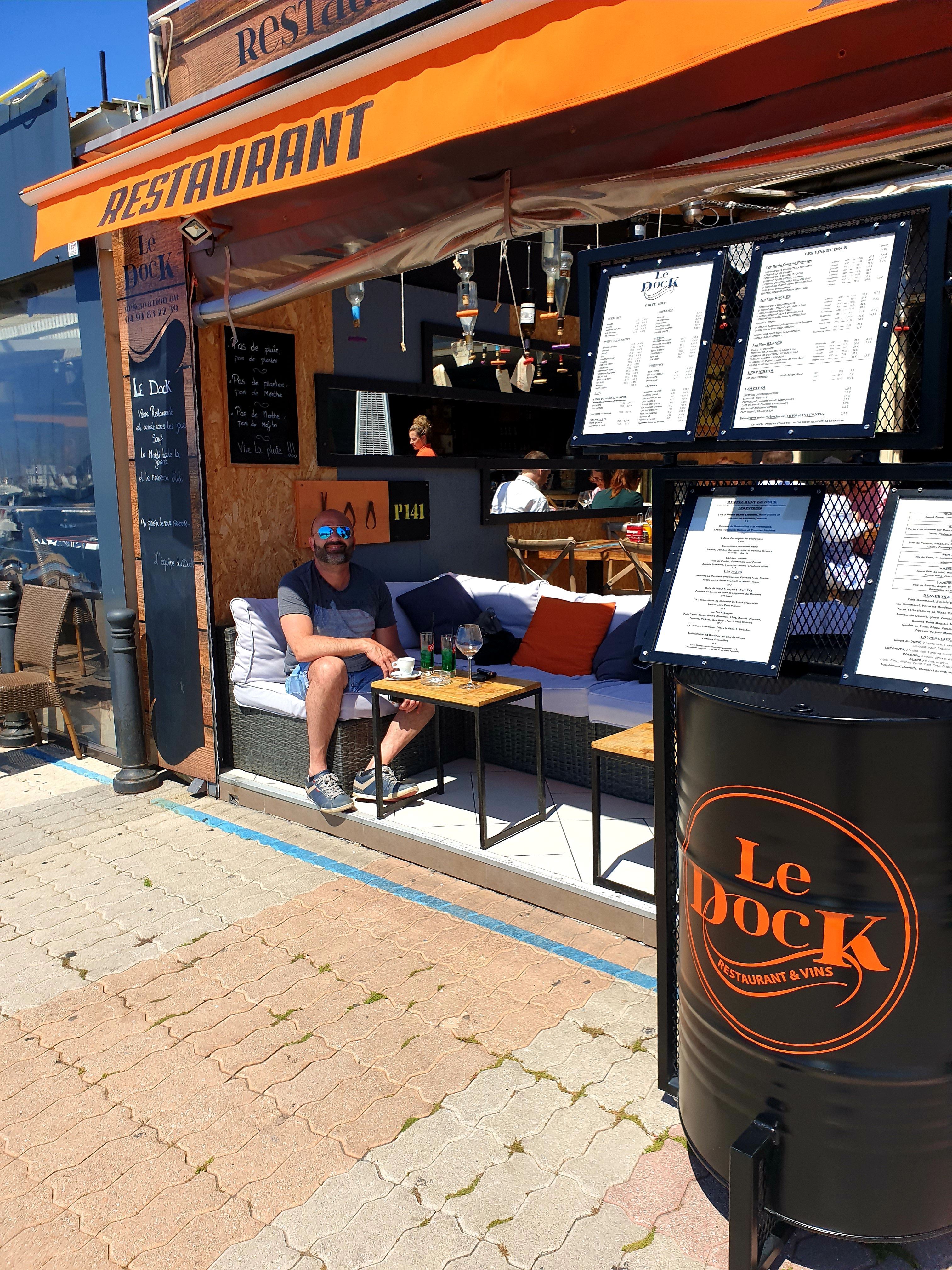 Ça fait 3 ans que je viens à Saint-Raphaël et c’est impossible de ne pas revenir au Dock. La déco atypique, les plats super bons, le service toujours accueillant et la musique!!! 👌🏾 Et même si je n’ai pas faim, c’est toujours agréable de prendre des cocktails dans les canapés face aux bateaux!