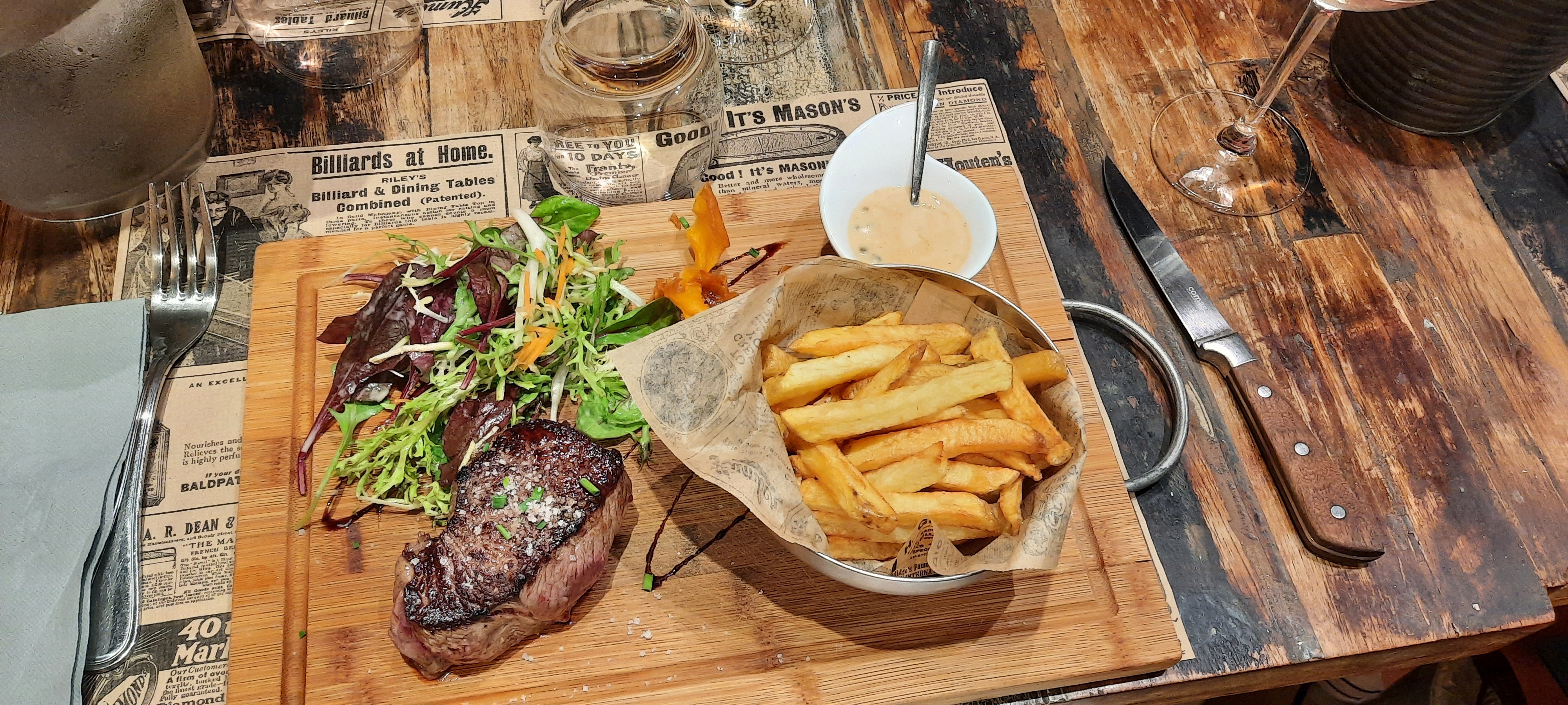 Bon petit repas, très heureuse d'y avoir mangé, tartare a l'italienne une bonne découverte, l'entrecôte maturé a donner le sourire a mon homme. La déco de ce restaurant est un vrai bon en arrière avec ces vieux outils d'antan.