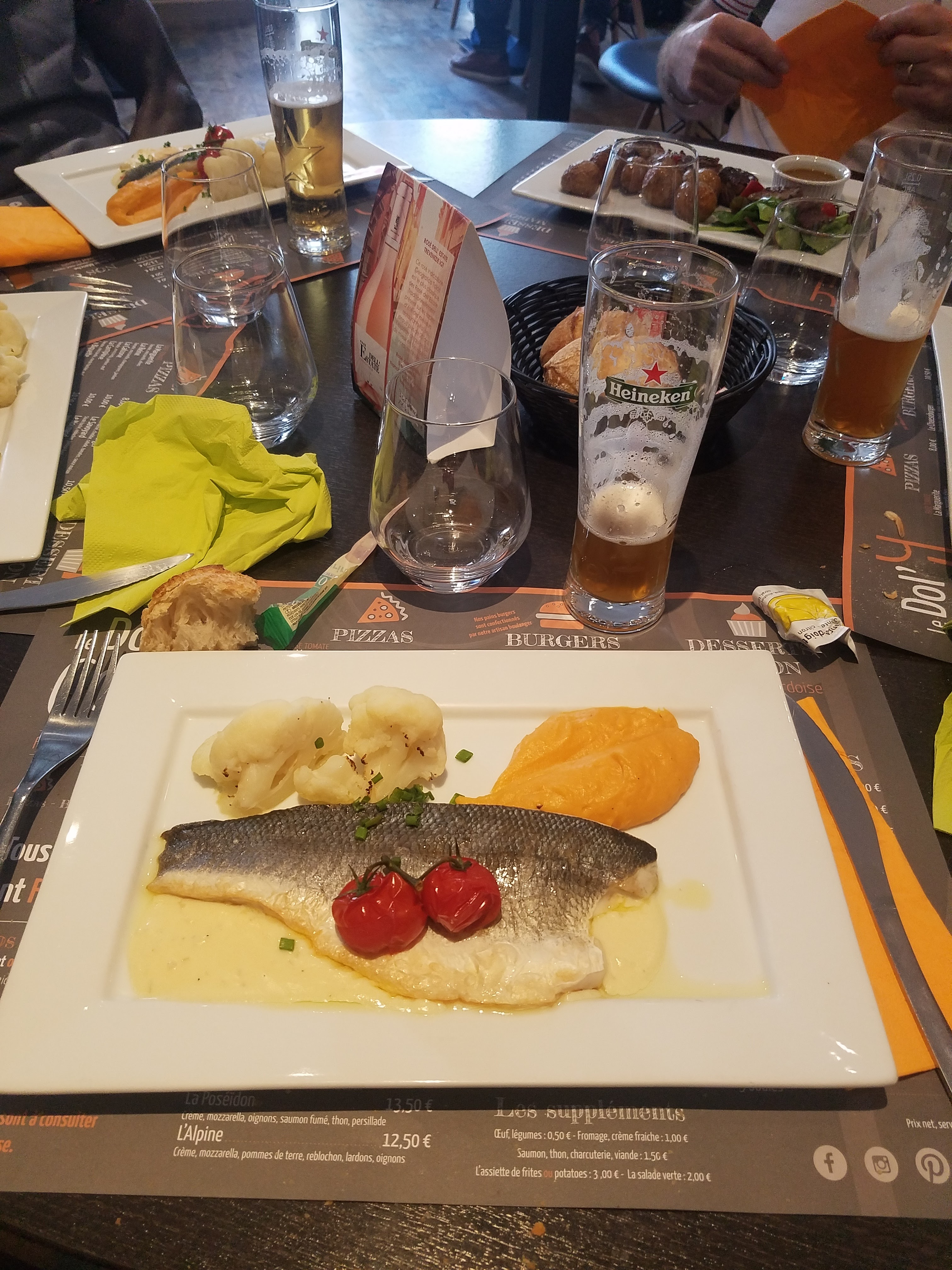 Un bon rapport qualité-prix pour notre menu 2 plats. On pouvait choisir entre 2 entrées, 2 plats et 3 desserts. Le plat de dorade était très bon. Ils ont aussi un grand choix de pizzas et des burgers. 42 euros à deux, boissons comprises, avec un café. La jeune fille du service est très polie. A REFAIRE