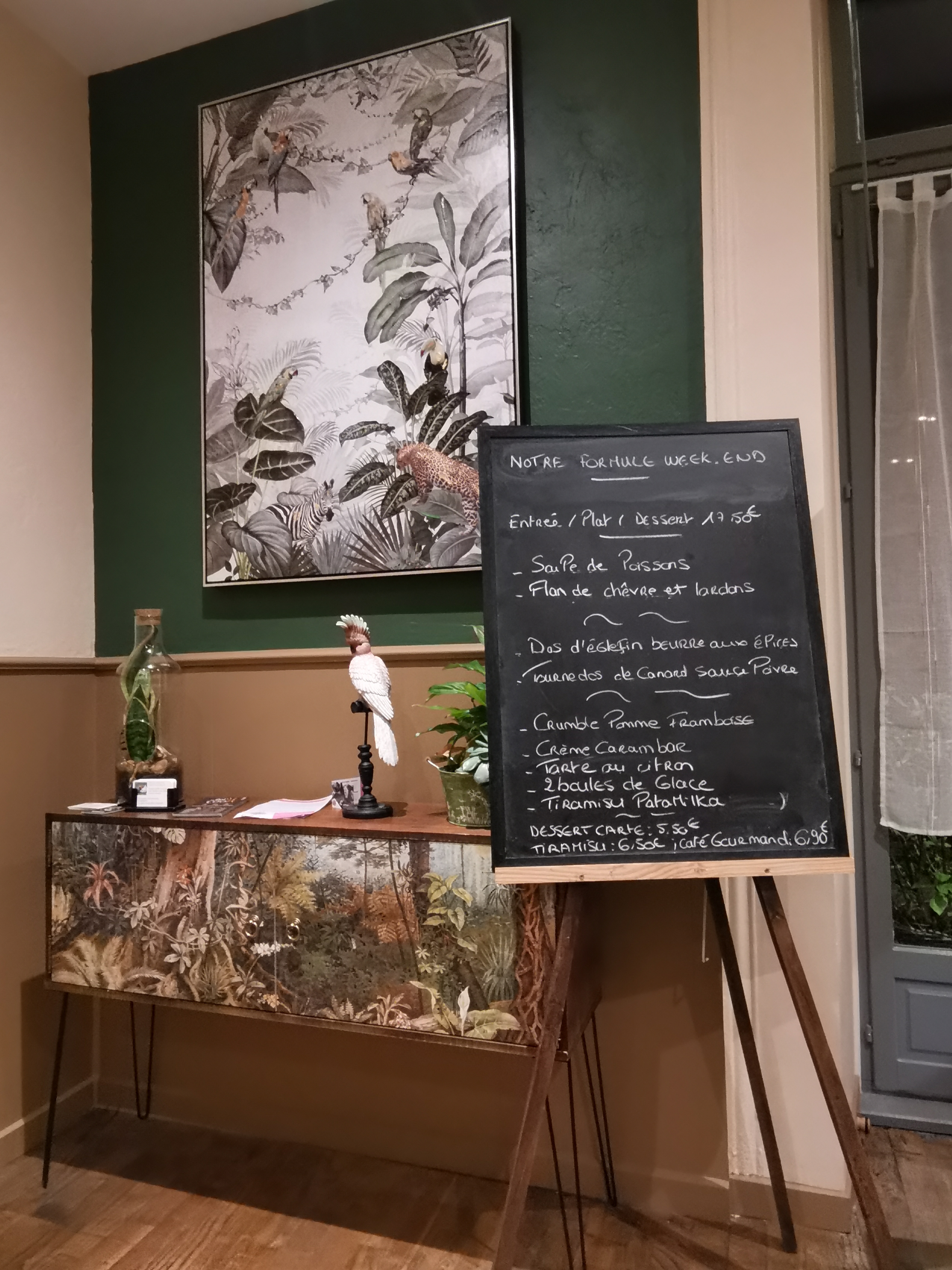 Alors nous avons eu la chance de découvrir le restaurant lors de notre visite dans la région est ce fut une expérience sublime la déco superbe la dame qui cour sur tout le front et adorable gentil et le cuisinier 👨🍳 🤪🤪🤪 une dingerie nous avons pris la suggestion du jour salade de gesiers moi le poulet basquaise et mon mari le lieu noir un régale pour les papilles en dessert le coup le aux pommes tout aussi délicieux notre fils a pris la pizza câline il c est régaler également tous sa pour vous dire vous pouvez y aller les yeux fermés c était parfait même au passage en caisse le prix était plus que correct pour le repas servie 🥰🥰🥰