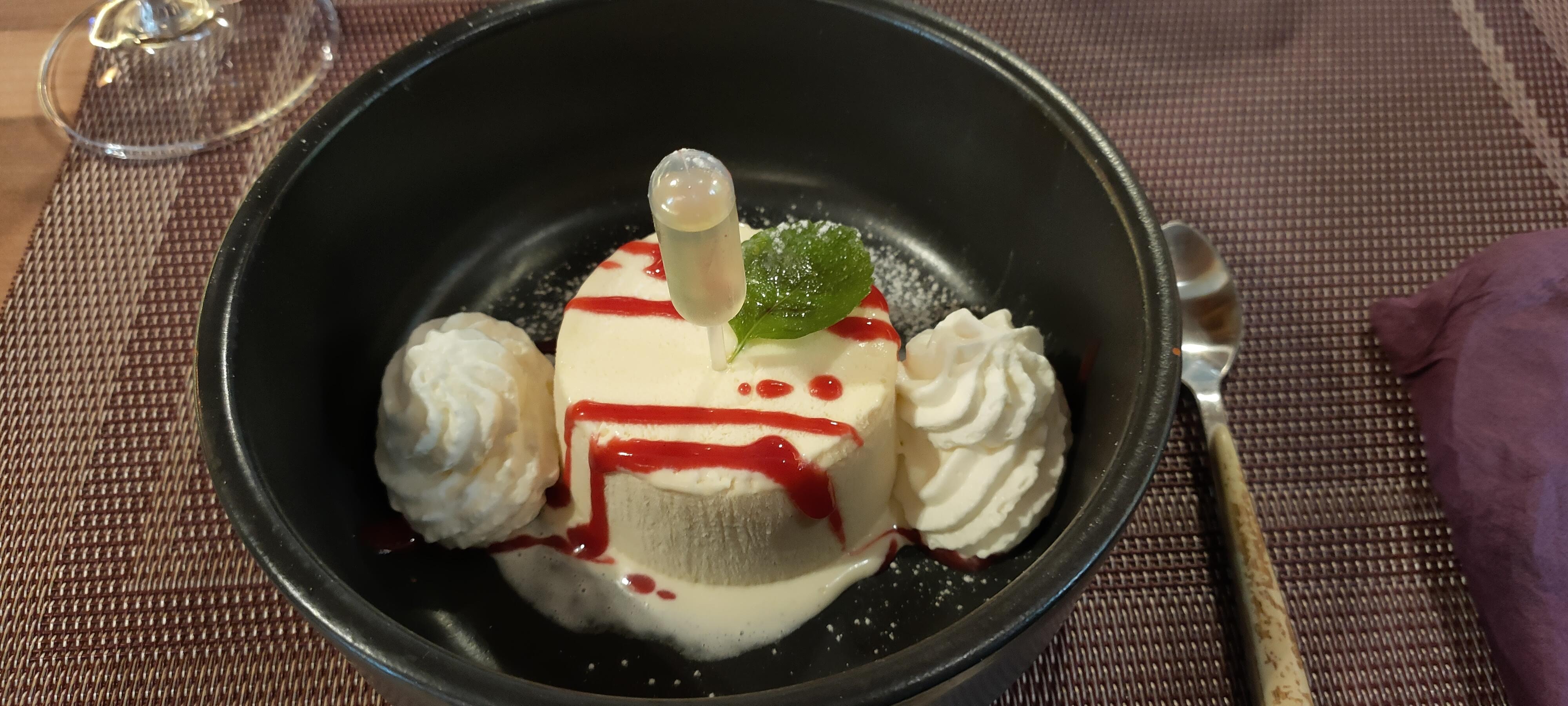 Un PAYSAGE montagneux magnifique. Des PLATS présentés avec modernité et raffinement, et surtout succulents ! Le tout accompagné par une ÉQUIPE chaleureuse ! On a eu tous les ingrédients pour passez un super moment hier soir avec en plus une ANIMATION MUSICALE au top. Une très belle réussite, on revient bientôt avec l'option ballade trotinettes électriques. Merci merci merci 🤩😘