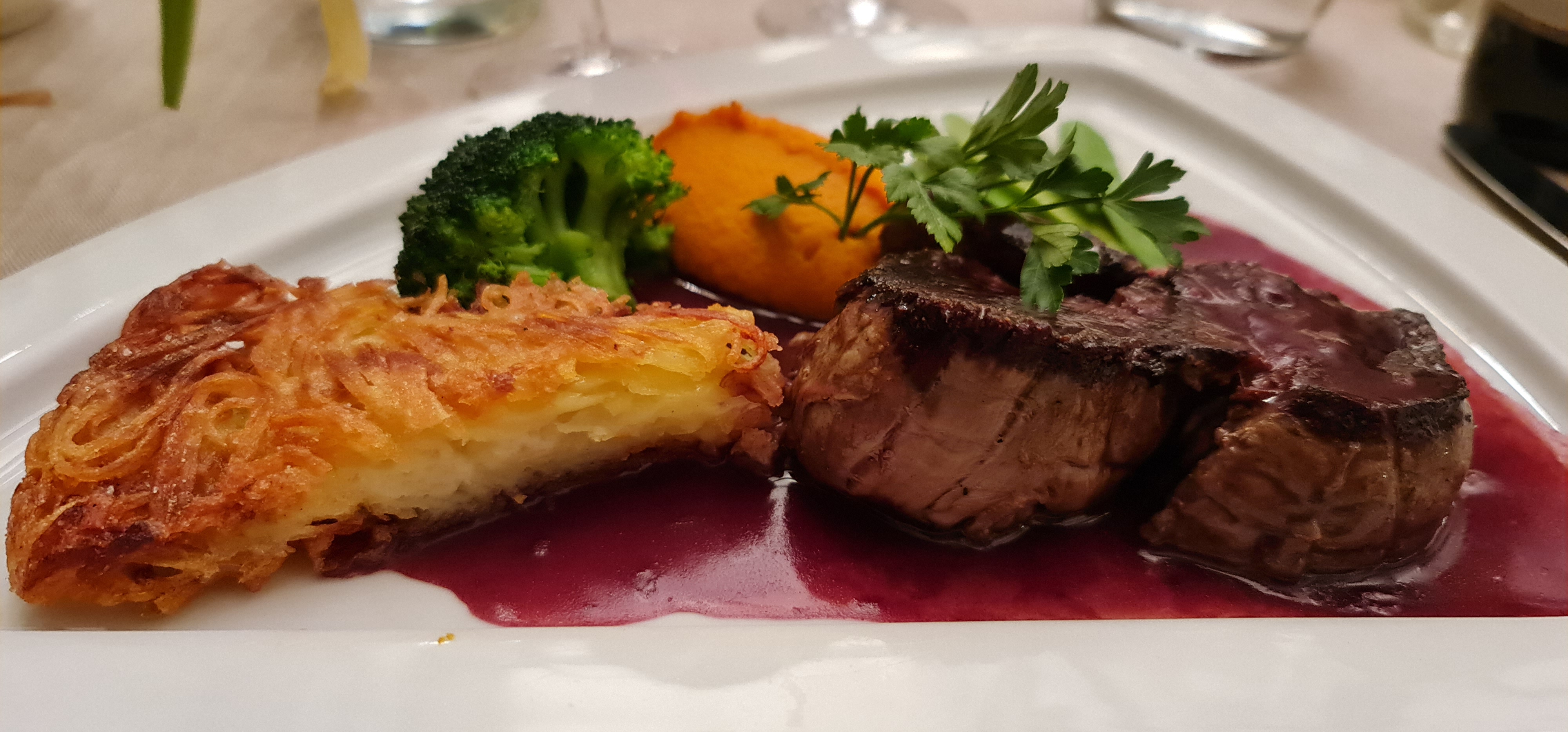 C’est bon (le tournedos est pas mal du tout !) ! Le cadre est beau ! Le service remarquable ! Mais rien de fabuleux non plus dans les plats , on s’attend à beaucoup ++ avec les prix affichés « gastronomiques »… les suppléments sur quasi tous les bons plats gâchent les bons prix affichés de la formule du midi.