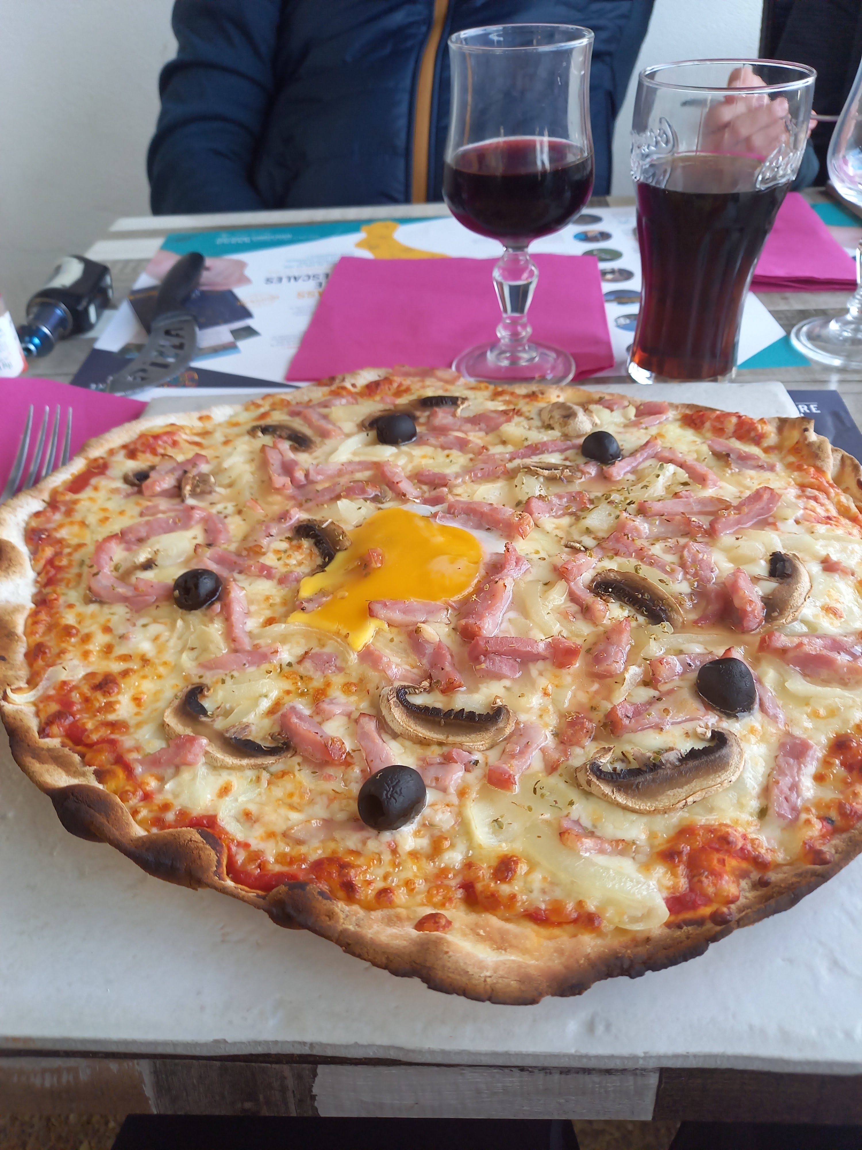 Pour 10€ pizza avec lardons quasi intégralement fais de gras et cuisson pas ouf servi sur des carreaux de ciment, sinon personnel très sympa