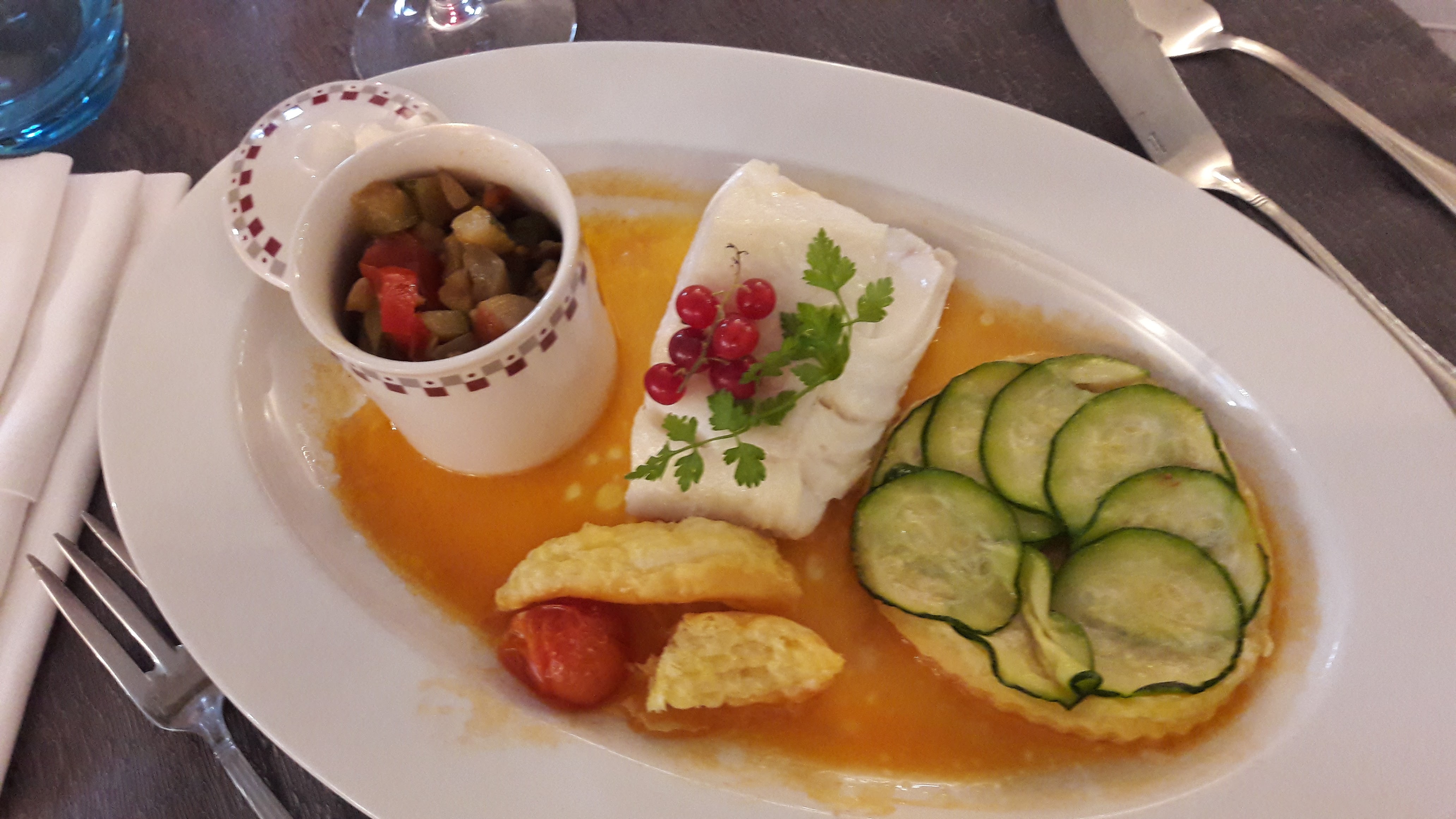 Menu intéressant, copieux, jolies assiettes ; service efficace et très prévenant. Dommage que toutes les fleurs devant les fenêtres soient fanées, cela donne vraiment une impression de négligence ;