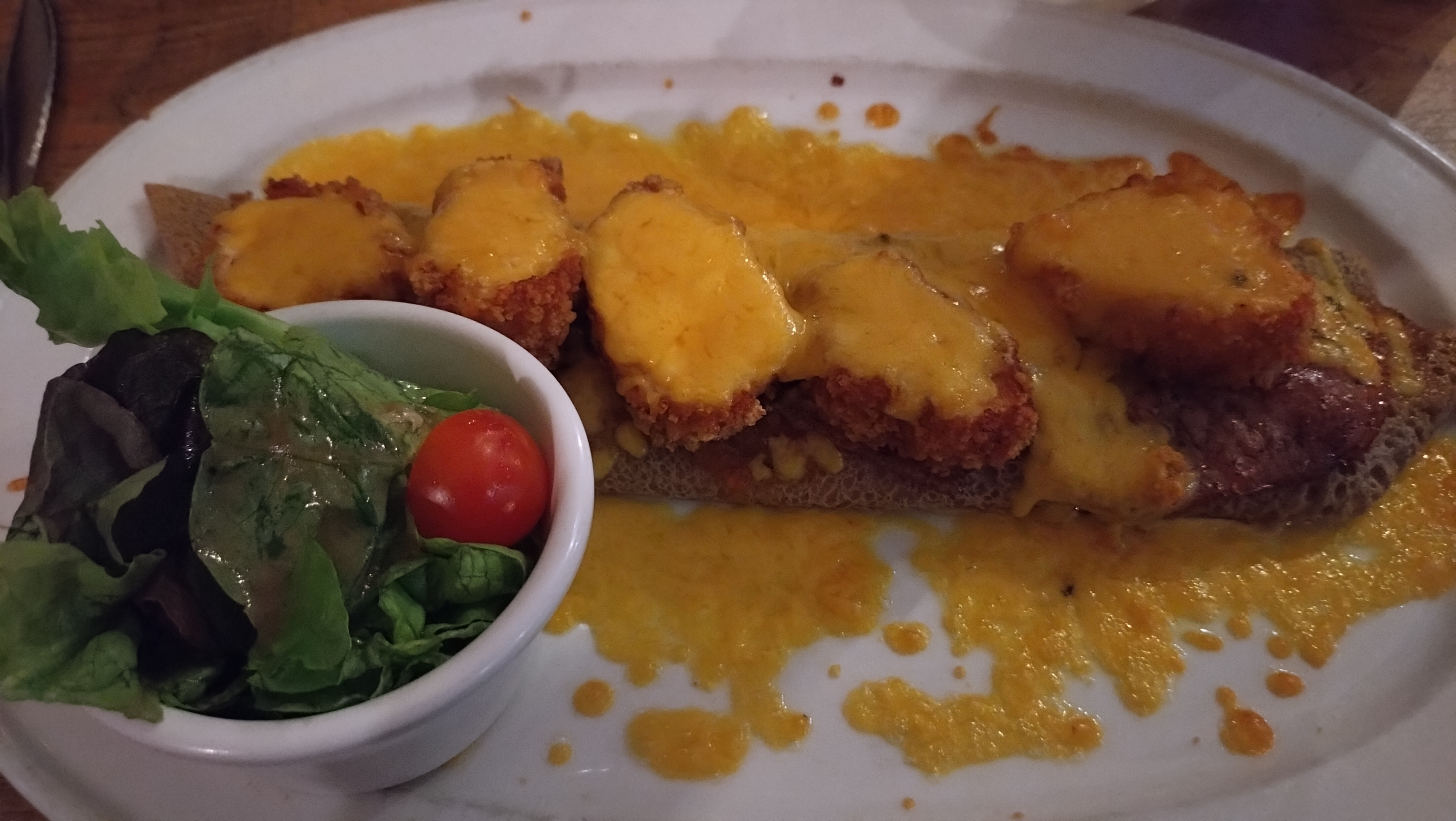 Rentrés au hasard, bonne surprise. Dommage la sauce cheddar qui ''baigne'' dans la crepe, texture et goût, mais c'est un ressenti personnel comme je ne connaissais pas. Service / déco au naturel et avec simplicité qui détendent. 🙂 Nous reviendrons