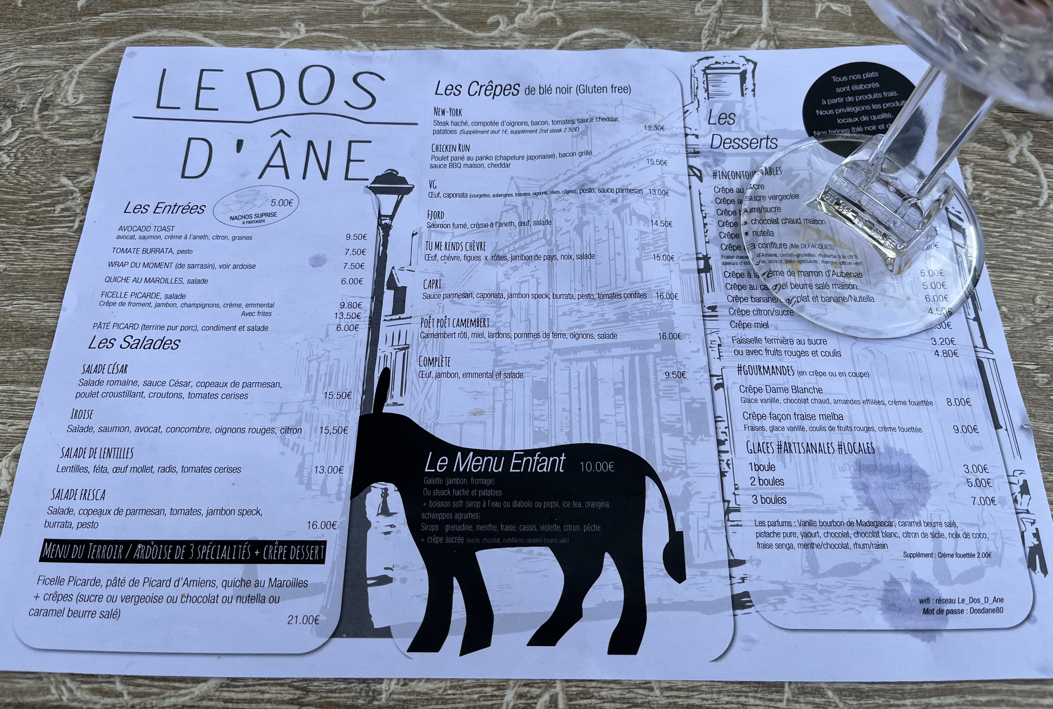 Le Dos D'âne est un établissement dans lequel je me rends dès que je reviens à Amiens. J'ai beau ne pas manger énormément en temps normal, je me régale toujours des délicieuses ficelles picardes (peut-être les meilleures de la ville). Les plats et desserts, bien que principalement axés sur la crêpe, sont très variés et savoureux. N'hésitez pas non plus à vous laisser tenter par les plats du jour, souvent renouvelés, qui proposent une découverte gustative particulièrement intéressante. Que redire du service chaleureux et efficace ou encore du cadre ? La terrasse donne sur la Somme et la cathédrale d'Amiens. Allez-y les yeux fermés !