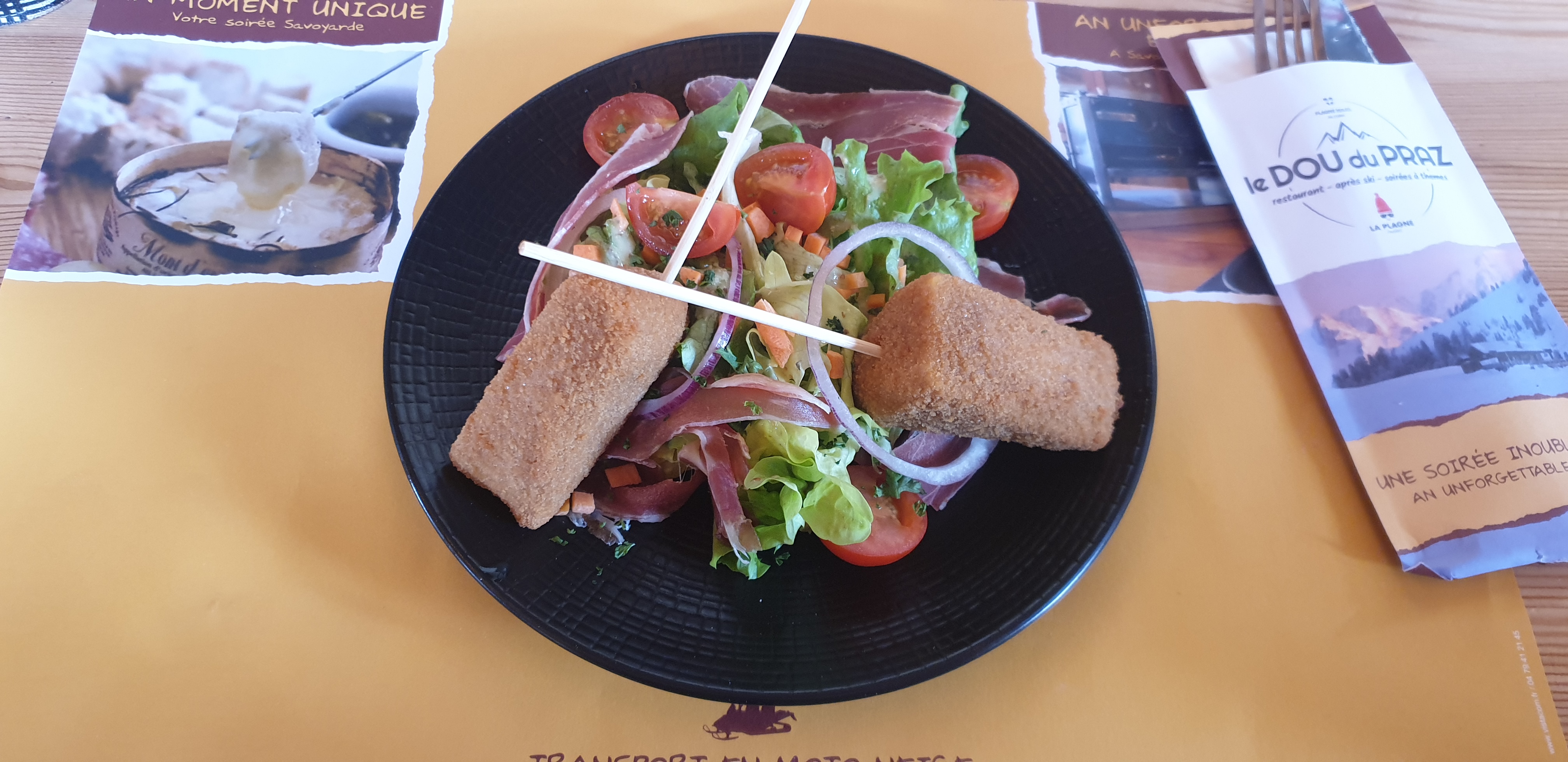 après une longue marche à la Plagne village déjeuner chez le dou du praz. excellence
