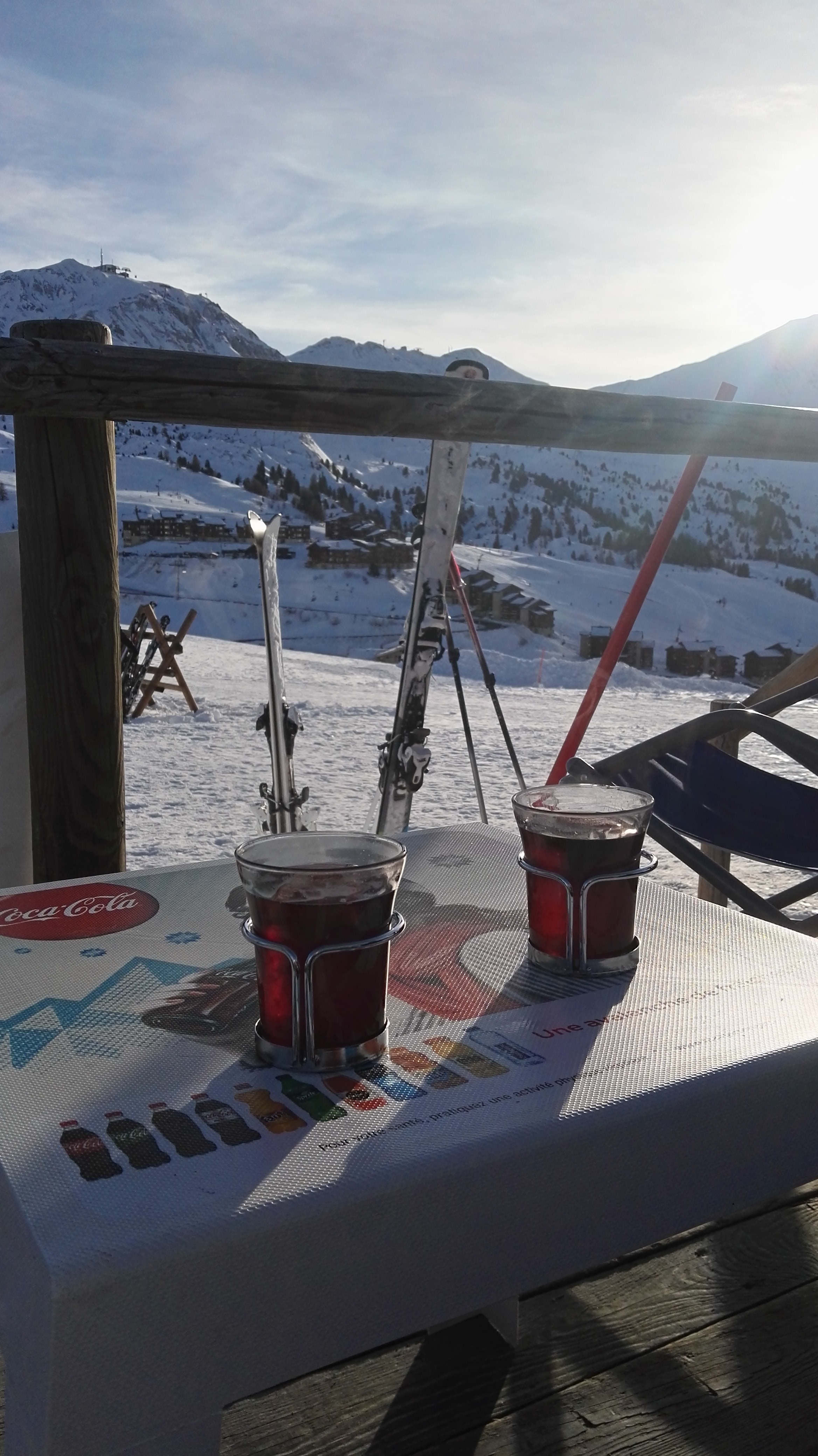 Excellents (même si un peu petits) Irish coffee servis par Océane. Sourire et bonne humeur en prime. Magnifique vue sur le domaine de ski des Plagne. À recommander