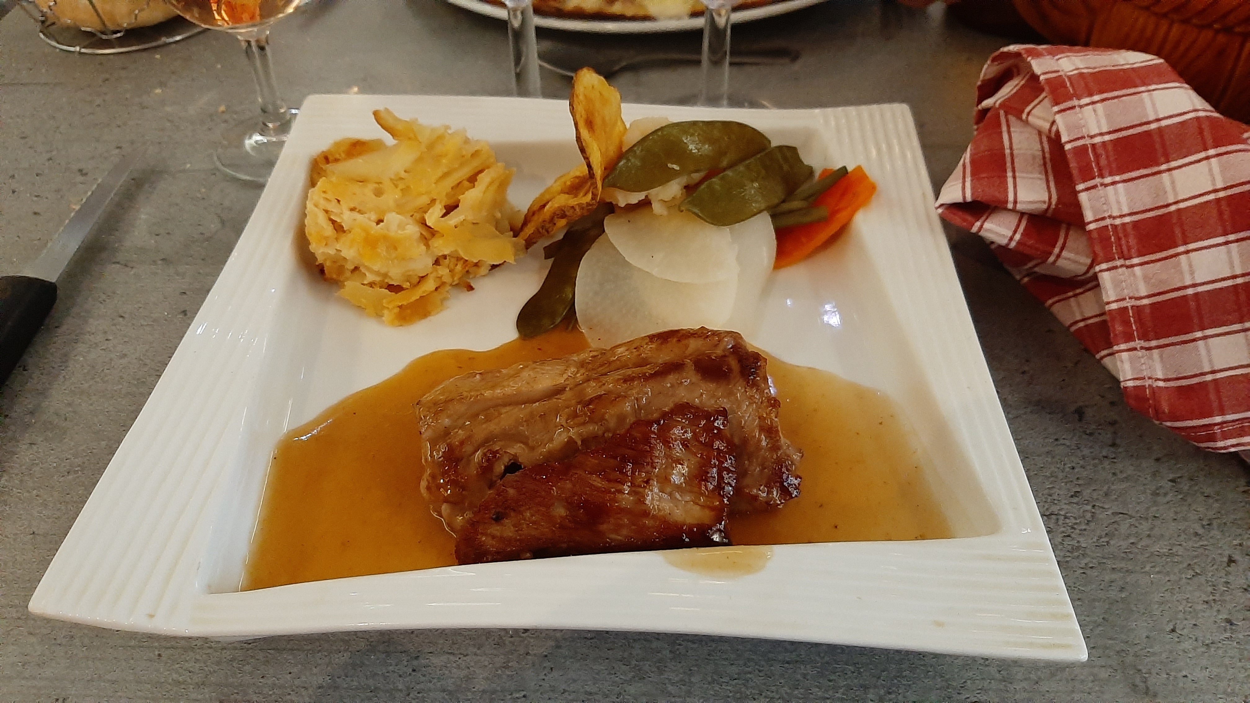Un confit de canard qui gagnerait à etre plus croustillant sur le dessus et des légumes à revoir totalement. Mais dans l'ensemble on y mange bien et le personnel y est très accueillant