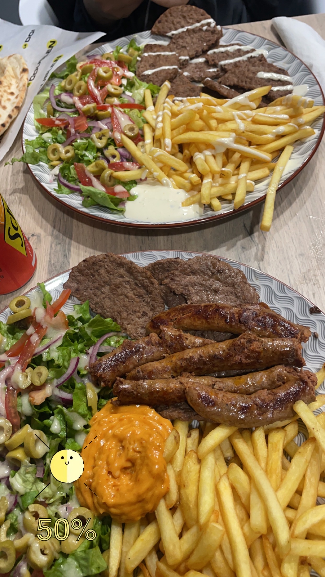 La viande n'est pas couper directement la viande est sorti d'un baque a proximité la dame en bourka et très mal polis elle se moque des autres est sur très agressif je déconseille fortement ce restaurant je vais contacter les services concernés hygiène et inspection du travail