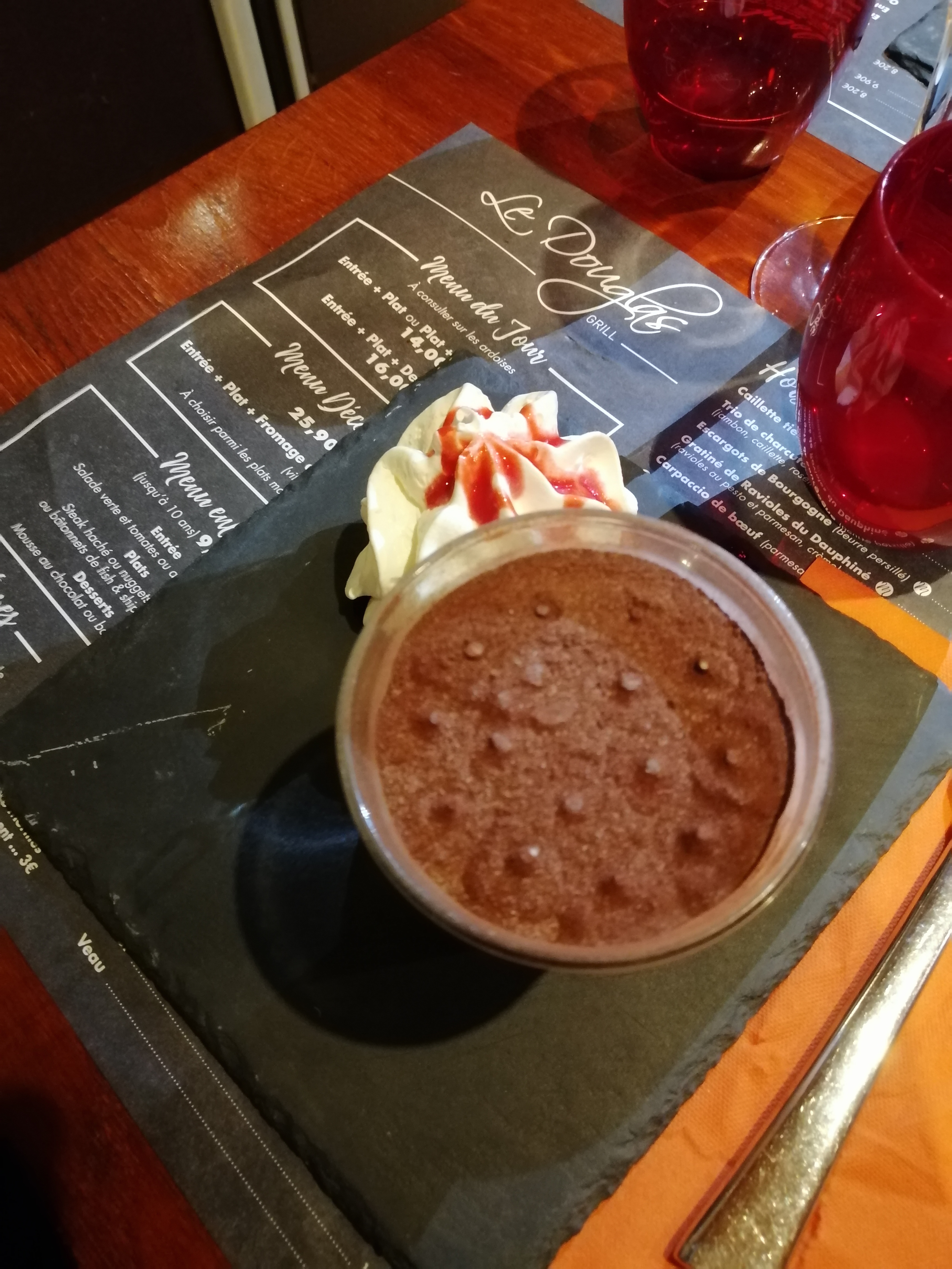 Le Douglas c’est degoulasse ! Dessert soit disant pas glacé mais en réalité il est congelé ! Si vous voulez manger aller au macdo c’est beaucoup mieux conseille d’amie c’est moins cher et tu sais au moins se que tu manges ! Cordialement a bon entendeur. En plus pour manger végétarien faut rajouter 1€ FADA ceci dit les végétariens en s’en fou mai bon 1€ + 1€ ça va vite avec les temps qui court.