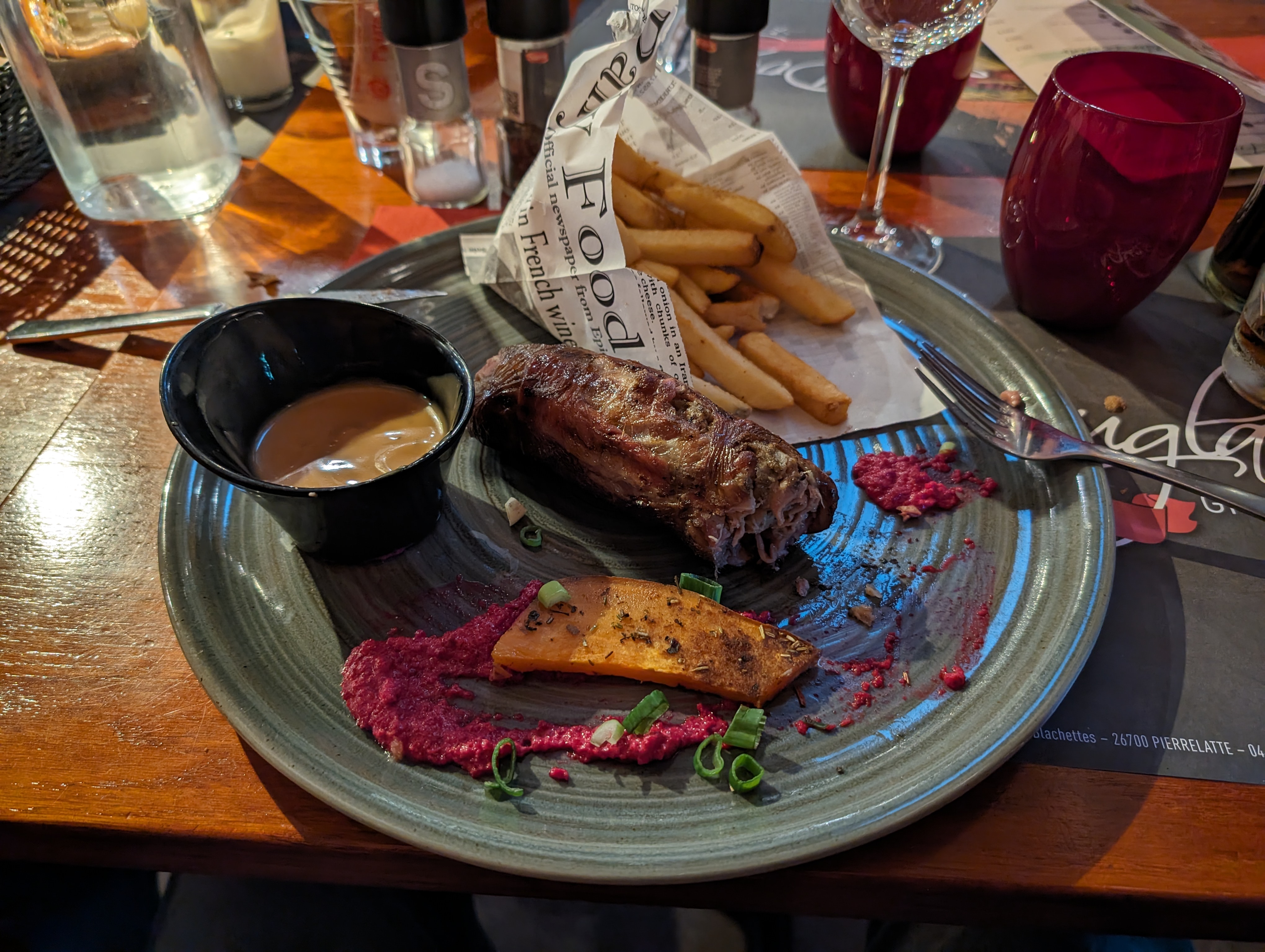 super restaurant proposé par le loft l'hôtel d'à côté un conseil il faut réserver super bon !! la viande cuite comme on l'a demandé et le must la papillote de chèvre a l'huile d'olive et des herbes une tuerie !! ne pas hésiter !!!