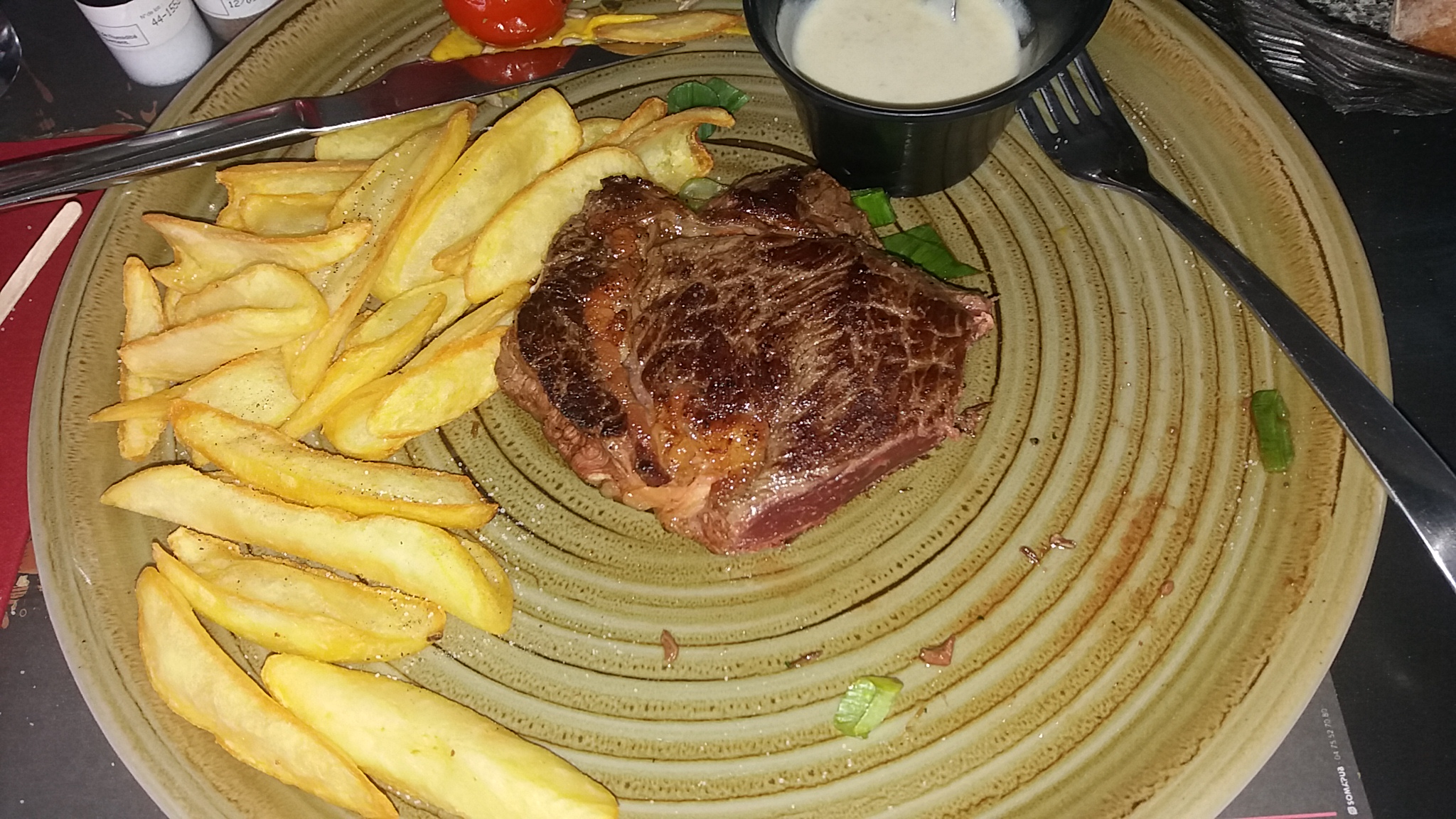 Service plutôt long, serveur peu réactif et tête en l’air, il manquait le pain puis un couvert, viande d’assez bonne qualité.