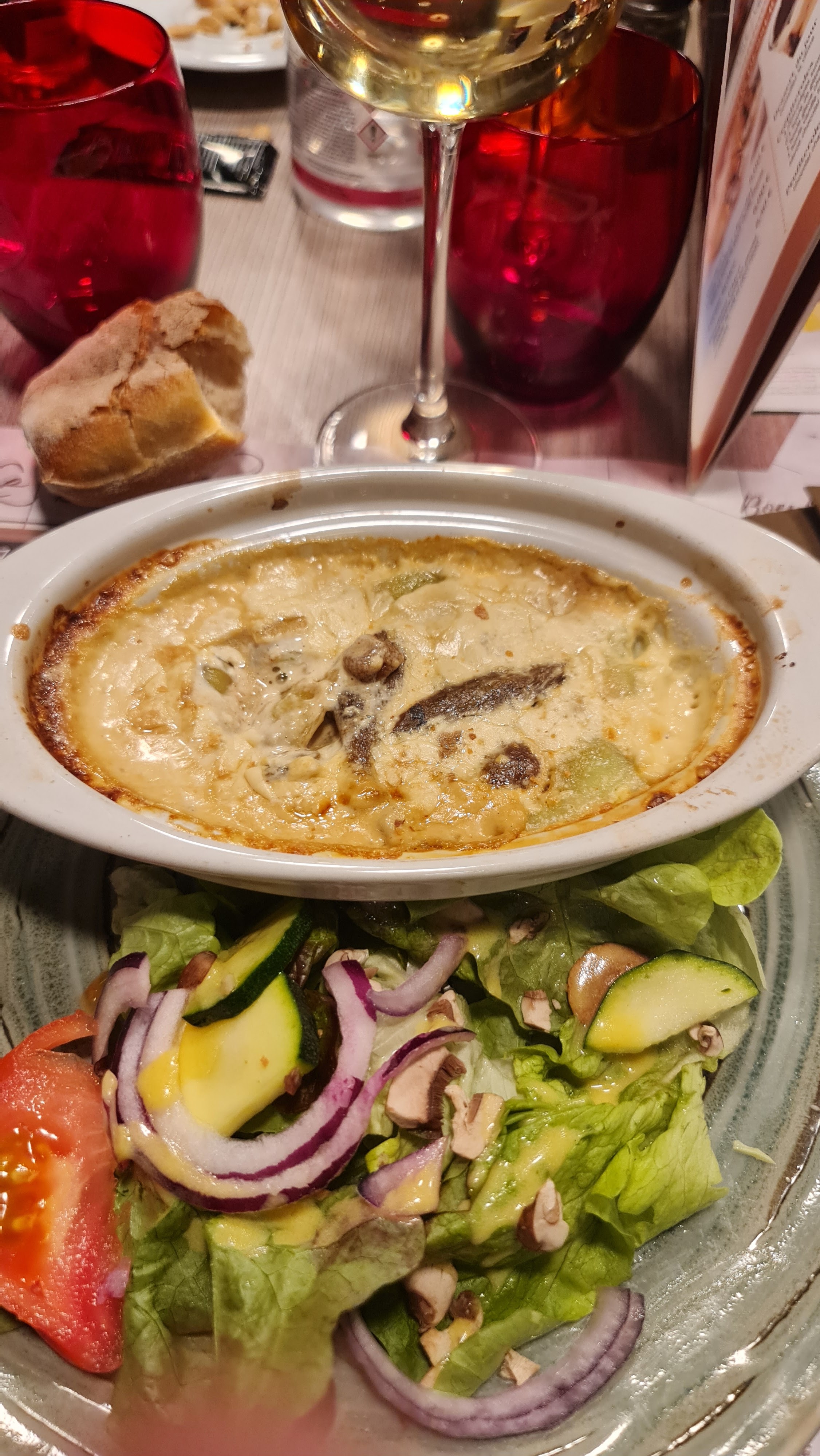 Que dire à part qu'on s'est régalé? un bon restaurant avec des plats très copieux, mon mari a juste prit un plat XXL, ça lui suffit. moi, un peu trop optimiste pour la capacité de mon estomacs ;-) un verre de vin chacun suite à la conseille de la serveuse, on est ravi. on va surement retourner.
