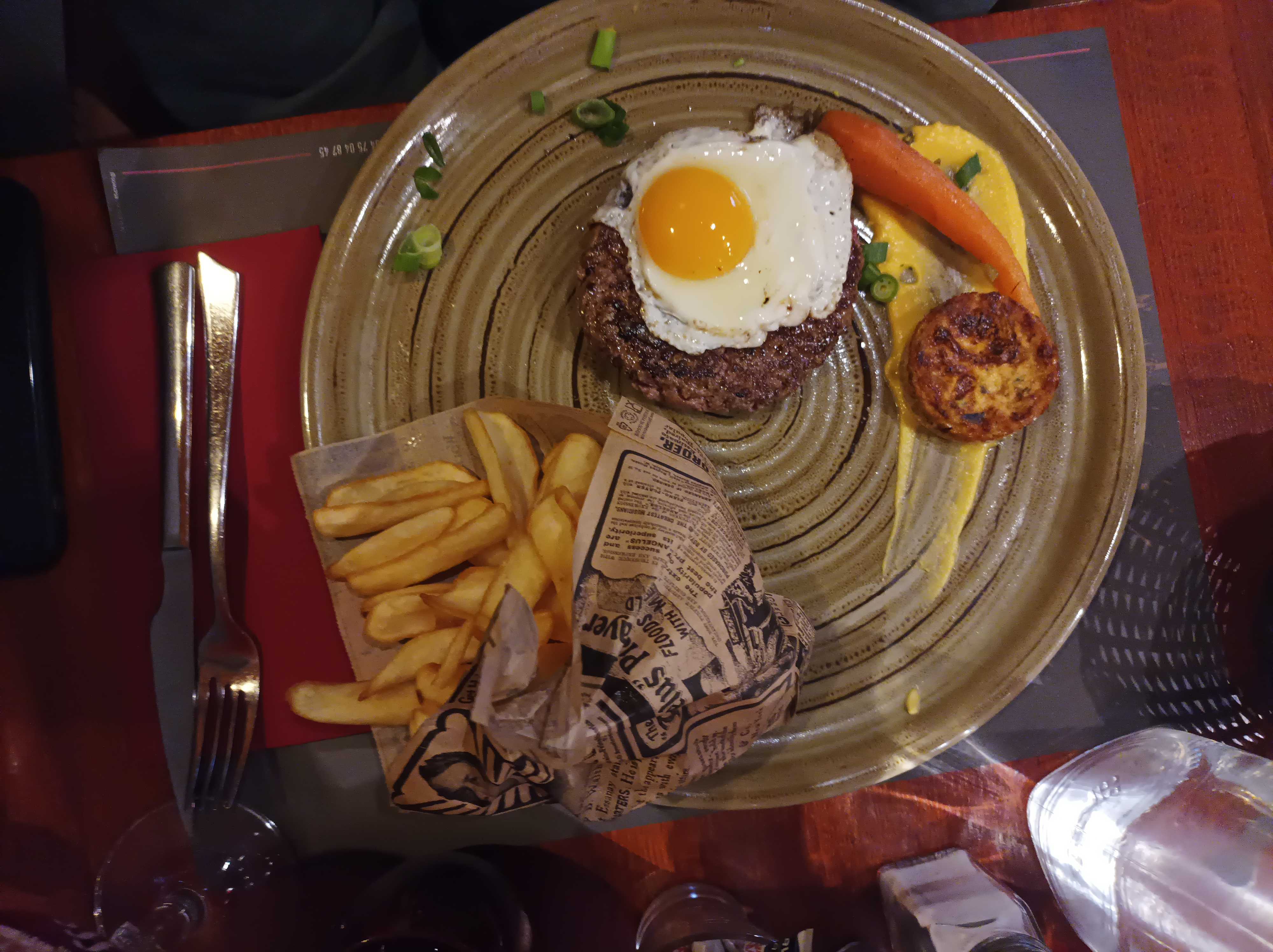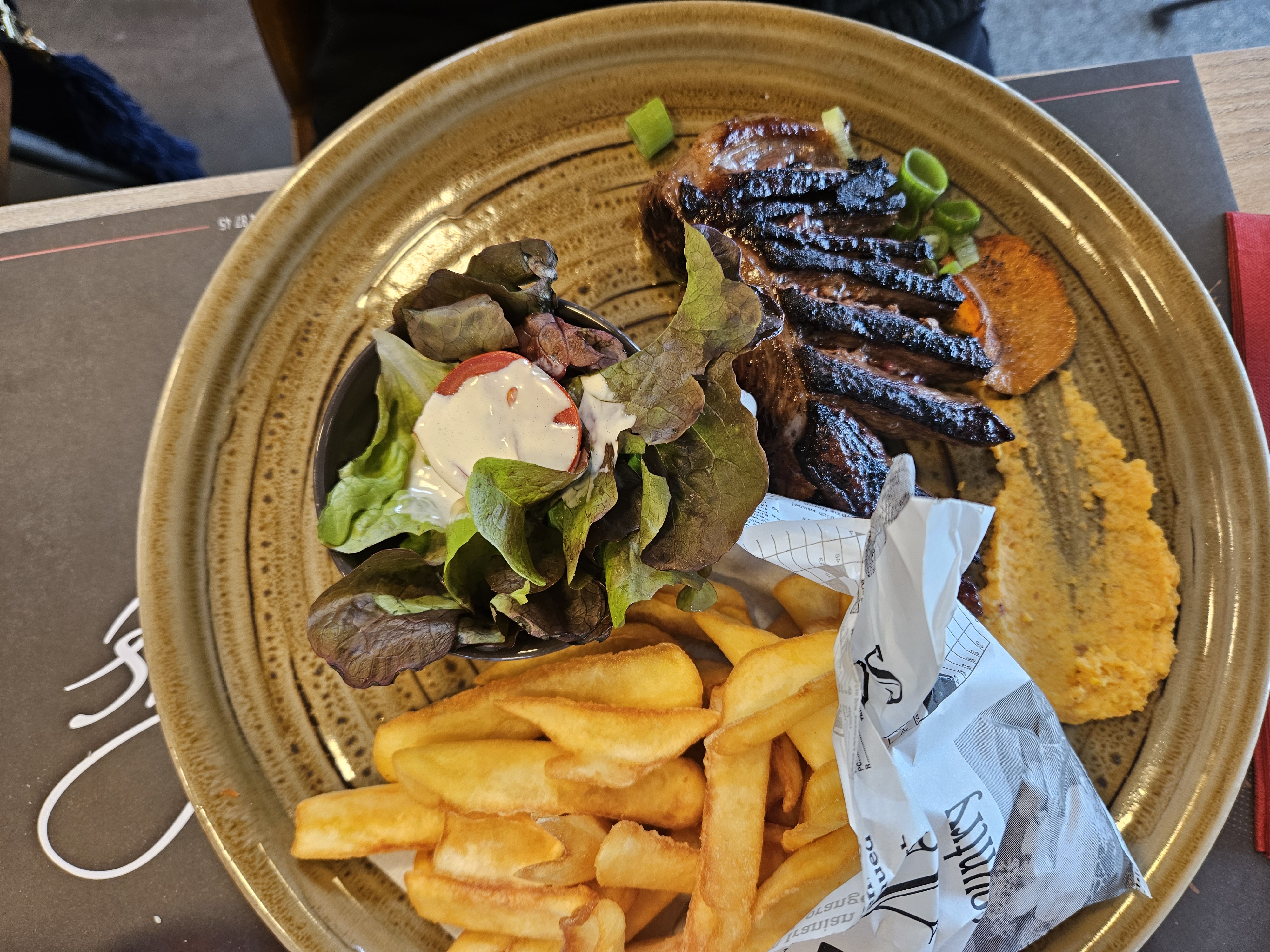 Ambiance chaleureuse garantie, dès lors que vous entrez dans le restaurant. Menus divers et variés pour tout les goûts. Présentation des assiettes soignées et garnis. Viandes délicieuses, prix très correct et personnel agréable. Rien à reprocher c'est un très bon restaurant.