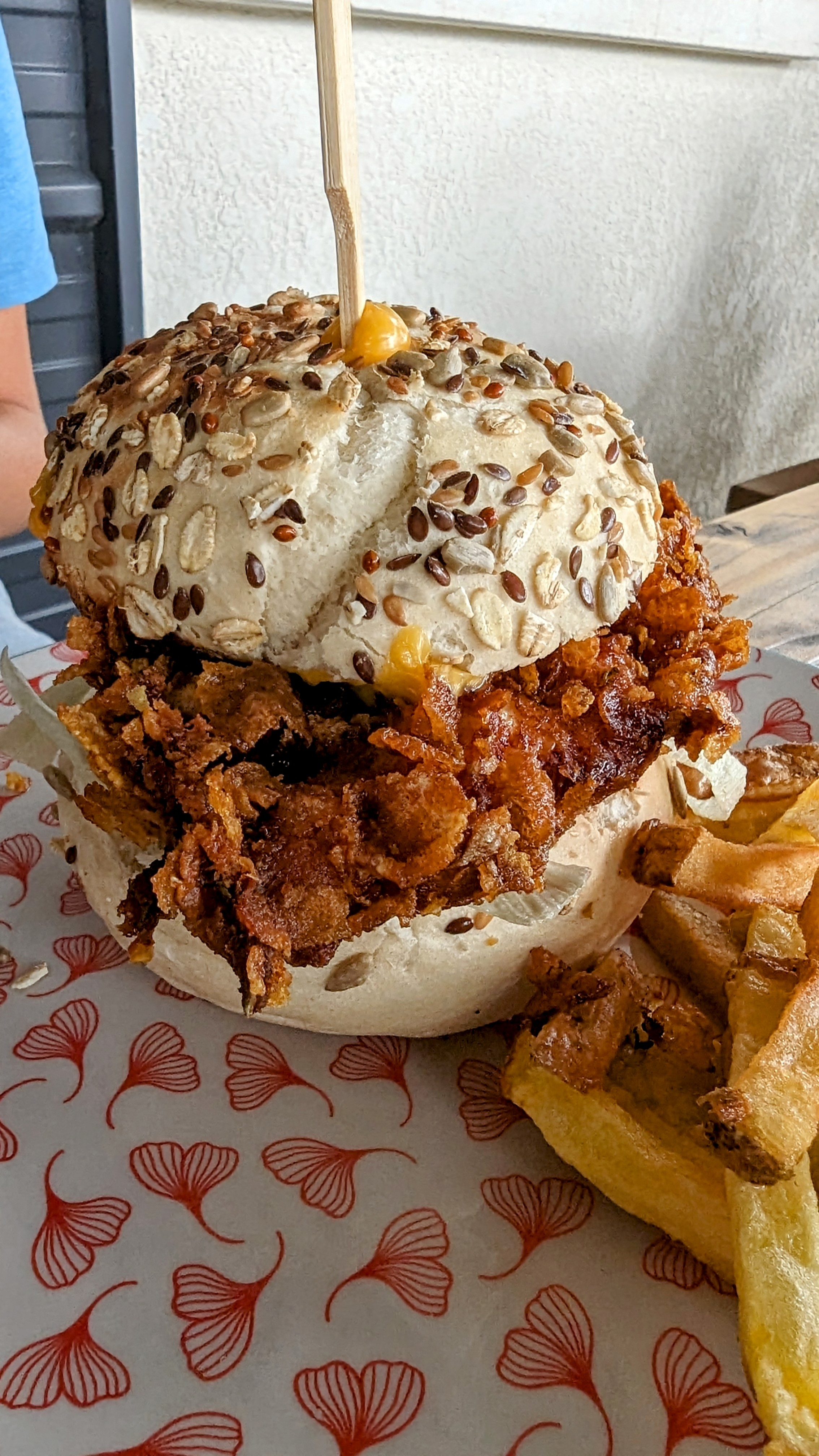 Des tapas croustillants avec mention très bien pour le poulet croustillant au cornflakes, un mojito bien dosé, des burgers exceptionnels avec un pain croustillant aux céréales et des frites maison avec la peau façon potatoes, une merveille!! Sans parler de la serveuse adorable! Allez y les yeux fermés!