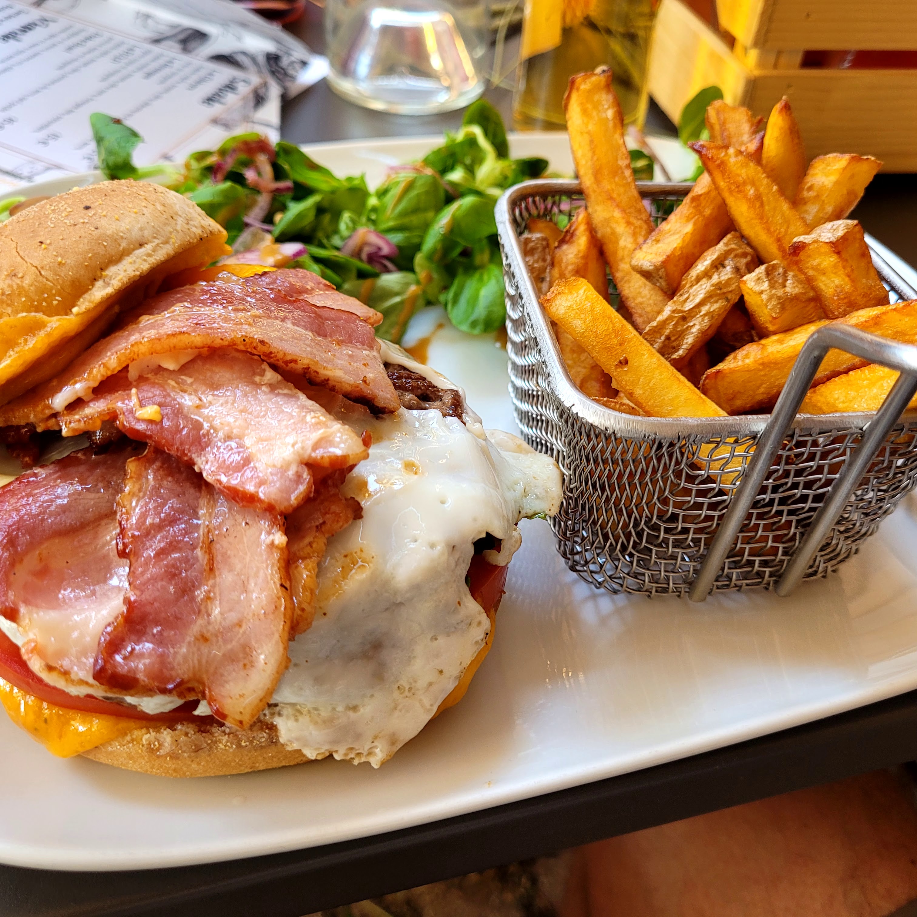 Bon burger et frite maison faite en double cuisson et pour un Belge ça a de l'importance ! Vous pouvez y aller les yeux fermés