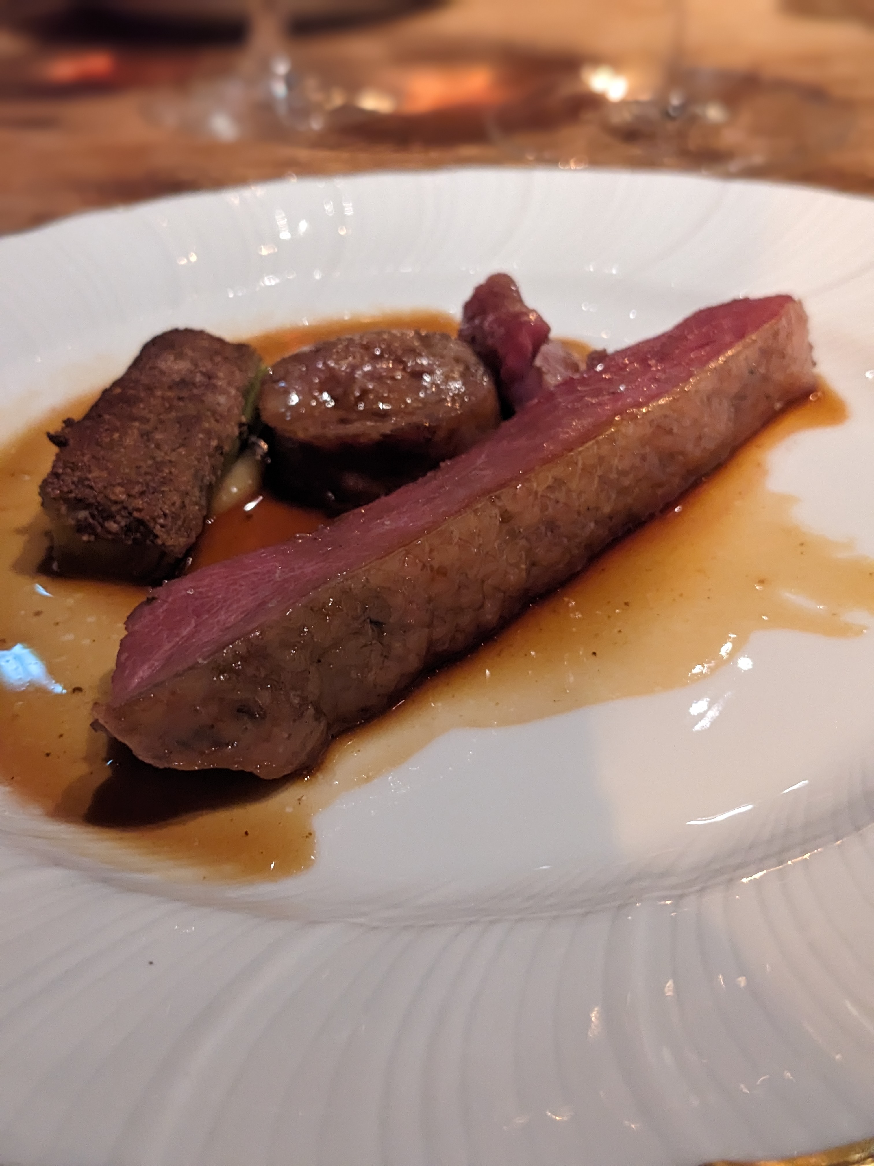 Avant de découvrir une cuisine pleine de talent, on découvre un lieu : apaisant, ressourçant ! Puis, c’est le moment du plaisir culinaire : brioche surprise incroyable, assiette déstructurée de légumes du jardin … Le cerf ne se démarque pas contrairement aux autres plats ! Bravo à l’équipe également pour ce superbe service. Conseil : prenez votre café en terrasse au soleil.