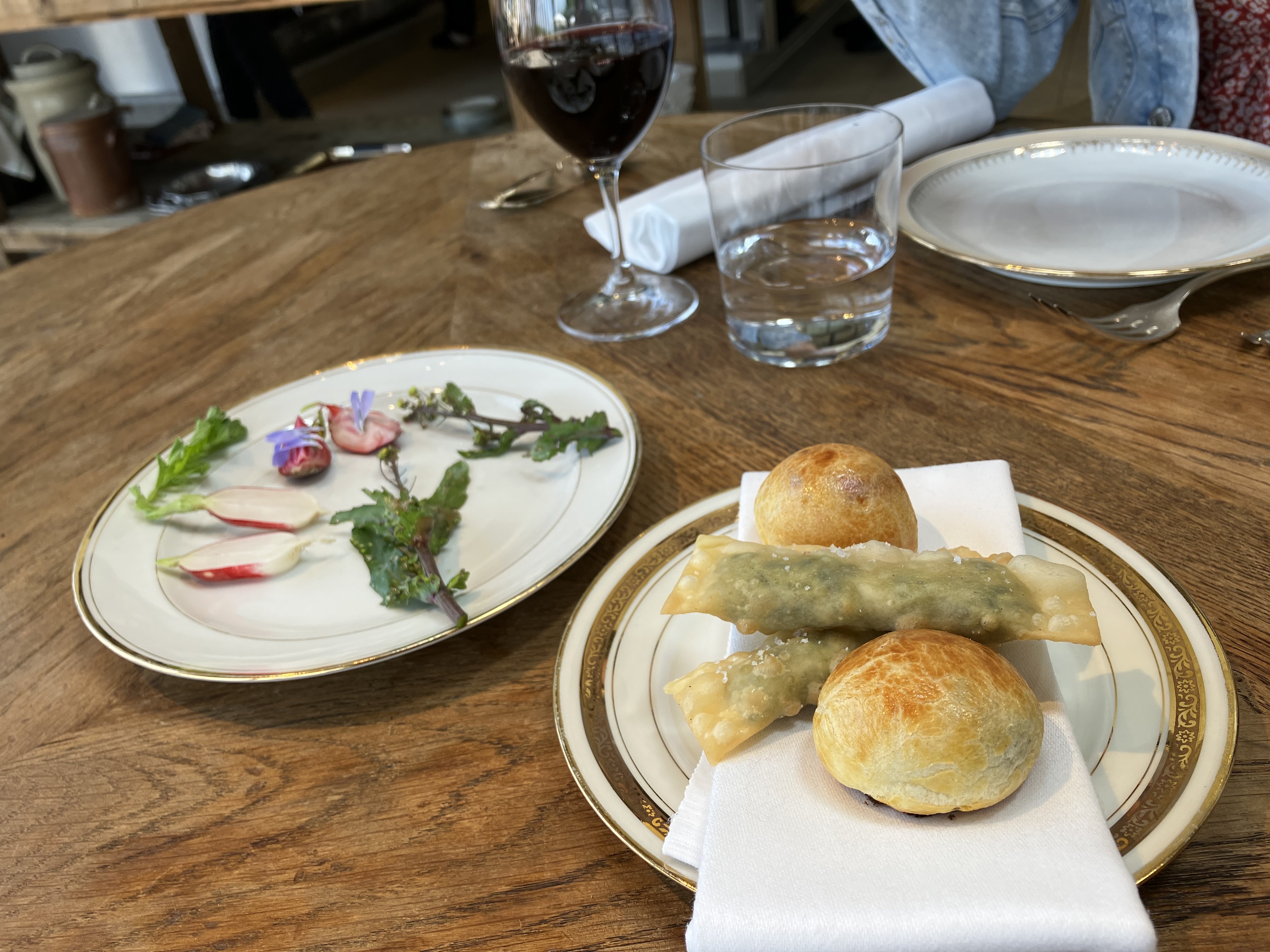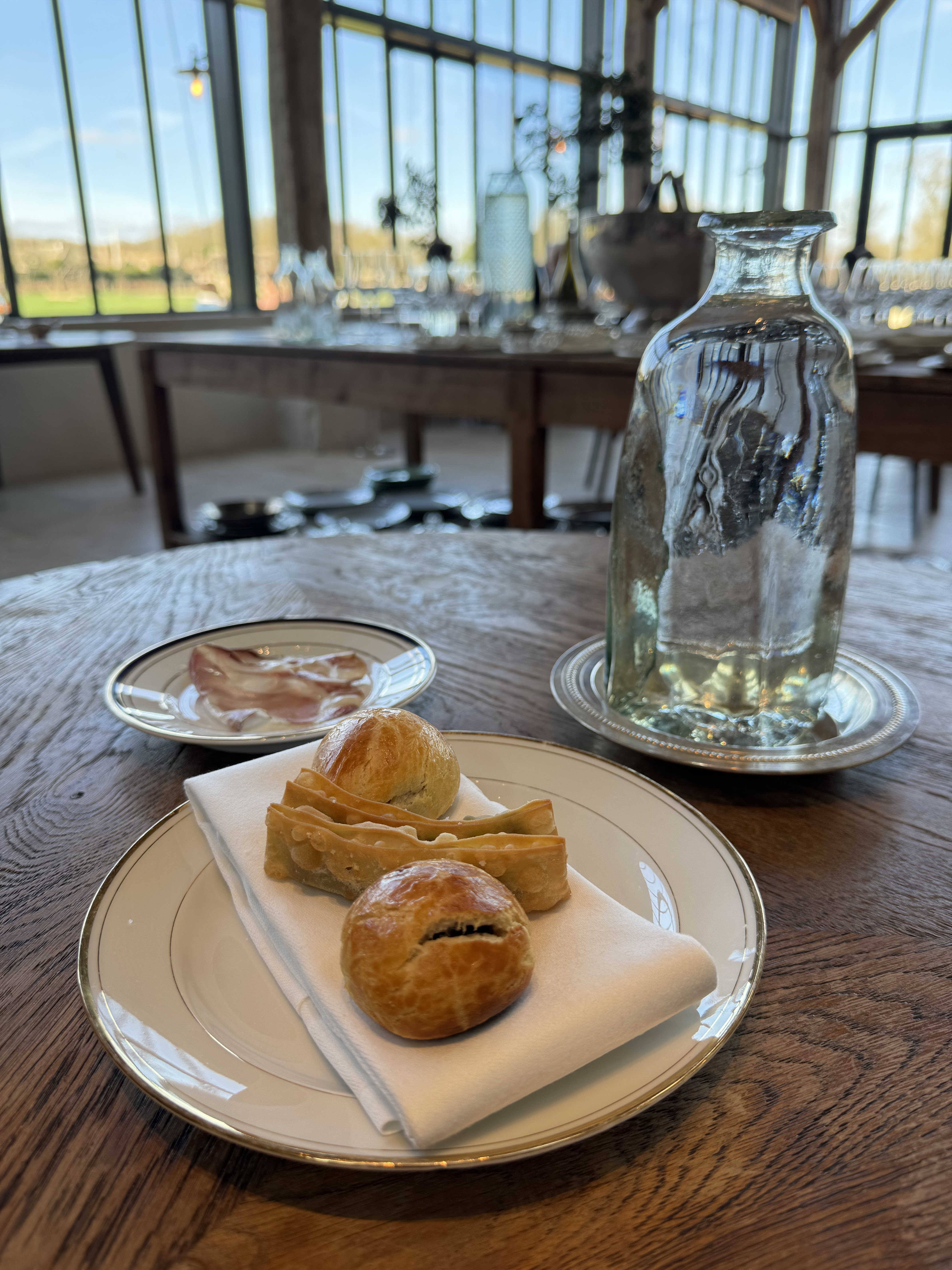 Il y avait le menu « dîner » le plus copieux pour le déjeuner et c'était phénoménal. Tout était mémorable et absolument délicieux. Il nous a parfois fallu attendre un peu entre les plats mais c'est juste plus de temps pour apprécier le bel endroit (qui vient jusqu'à Saint-Vrain pour manger pressé de toute façon ?). L'intérieur et l'extérieur étaient magnifiques et c'était agréable de pouvoir se promener dans la ferme. J'ai hâte de revenir
