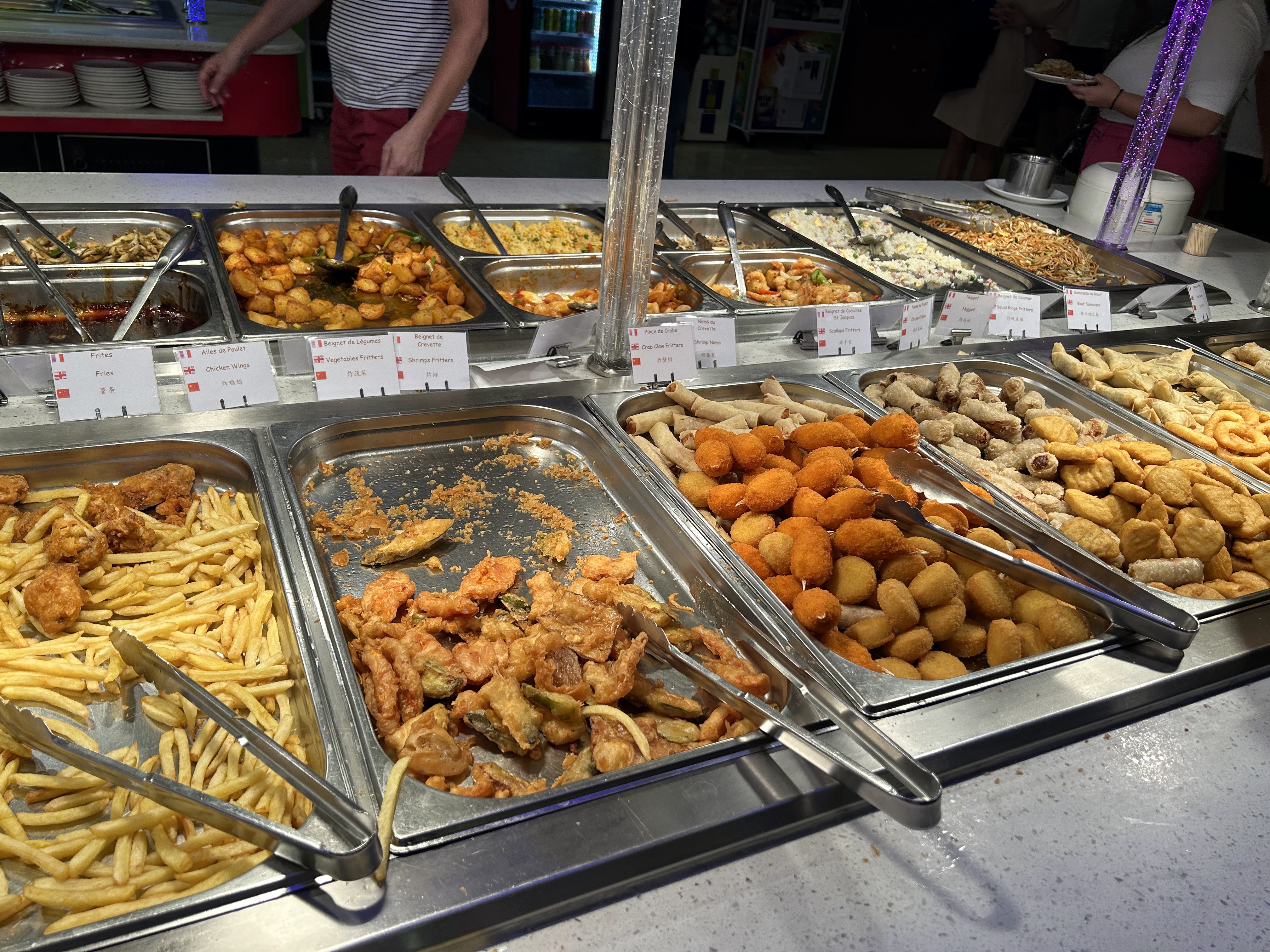 Sincèrement certains plats ne sont pas du jour comme cubes en formes de triangle de pommes terre frits, crevettes en sauce pas terrible, sinon sushis très bon, frites ok, champignons sauces extra succulent, il faut améliorer certains plats , c est dommage, c est cela qui repousse les clients.