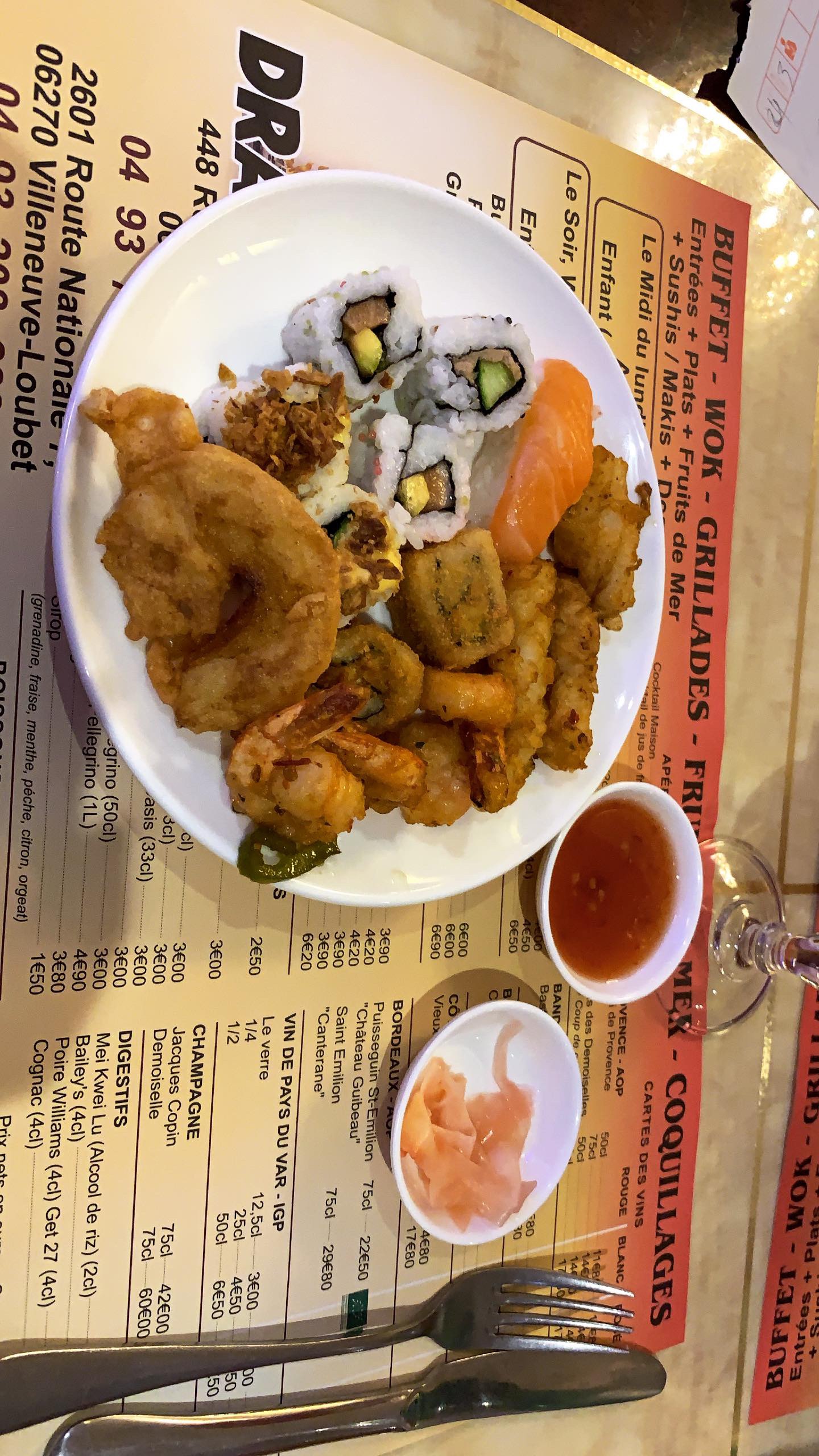 Nous avons dîné au dragon d’or. Il y’a beaucoup de choix (même trop) ! Cependant ce qui est proposé n’est pas toujours très bon et c’est bien dommage … Aussi, le restaurant est très bruyant …