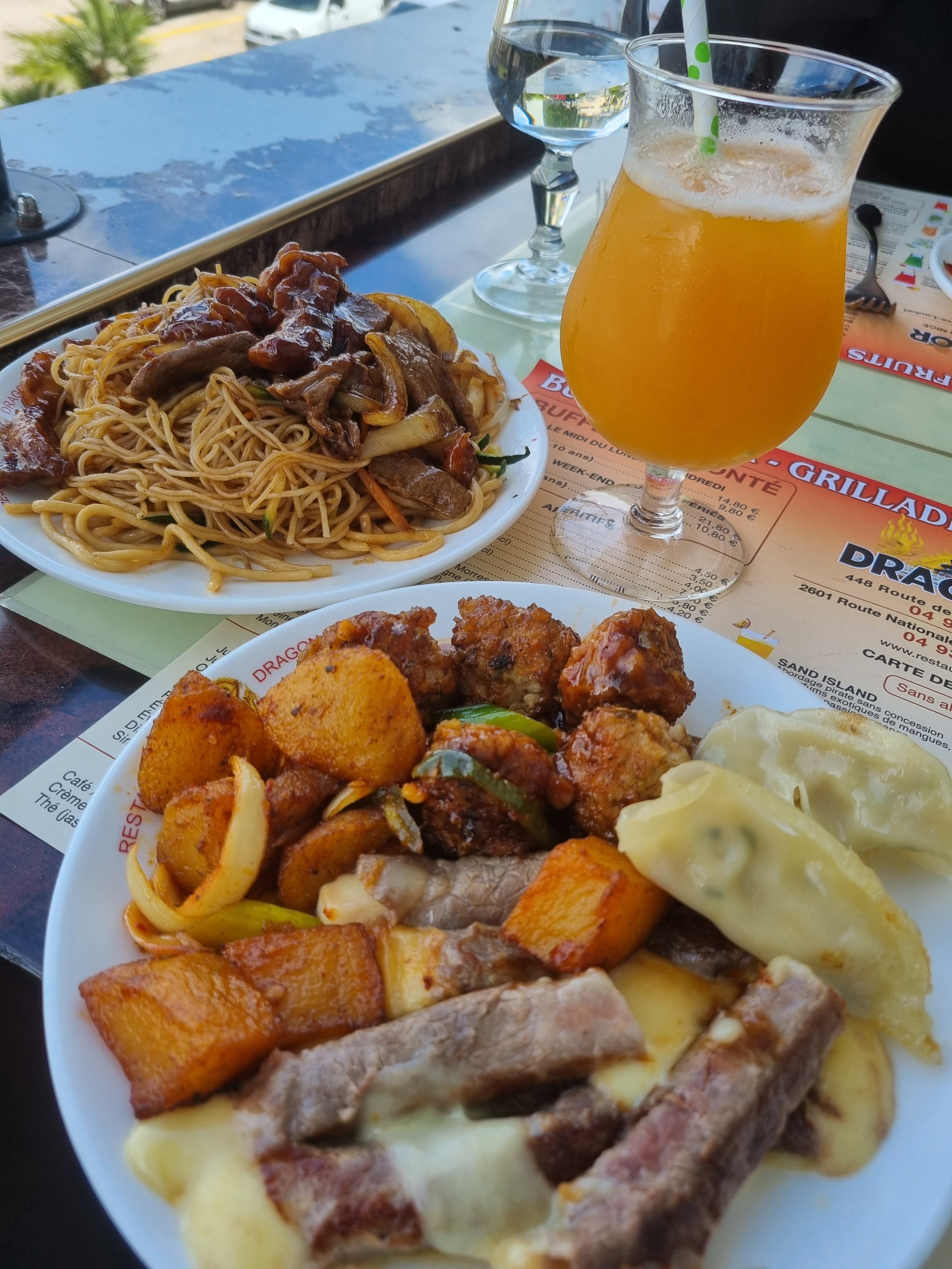Ce restaurant 🥡offre un choix très varié et à volonté de plats chinois différents 🫑🍎🍗🫔🍲🥚🥘🍤🍜🦪🦐, entre cuit , cru, beignets🥟🥠, woks , sushis 🍱, dessert 🍨 , carte de cocktail 🍸 avec et sans alcool , boissons autres 🍻🥤🍷☕🍵 Ce lundi midi 14 € 50 le repas adulte Ma réserve vient de l'ambiance sonore de la salle à manger et des sauces d'accompagnement qui manquent de goût Mais je recommande néanmoins ce restaurant si on est bon mangeur et pressé