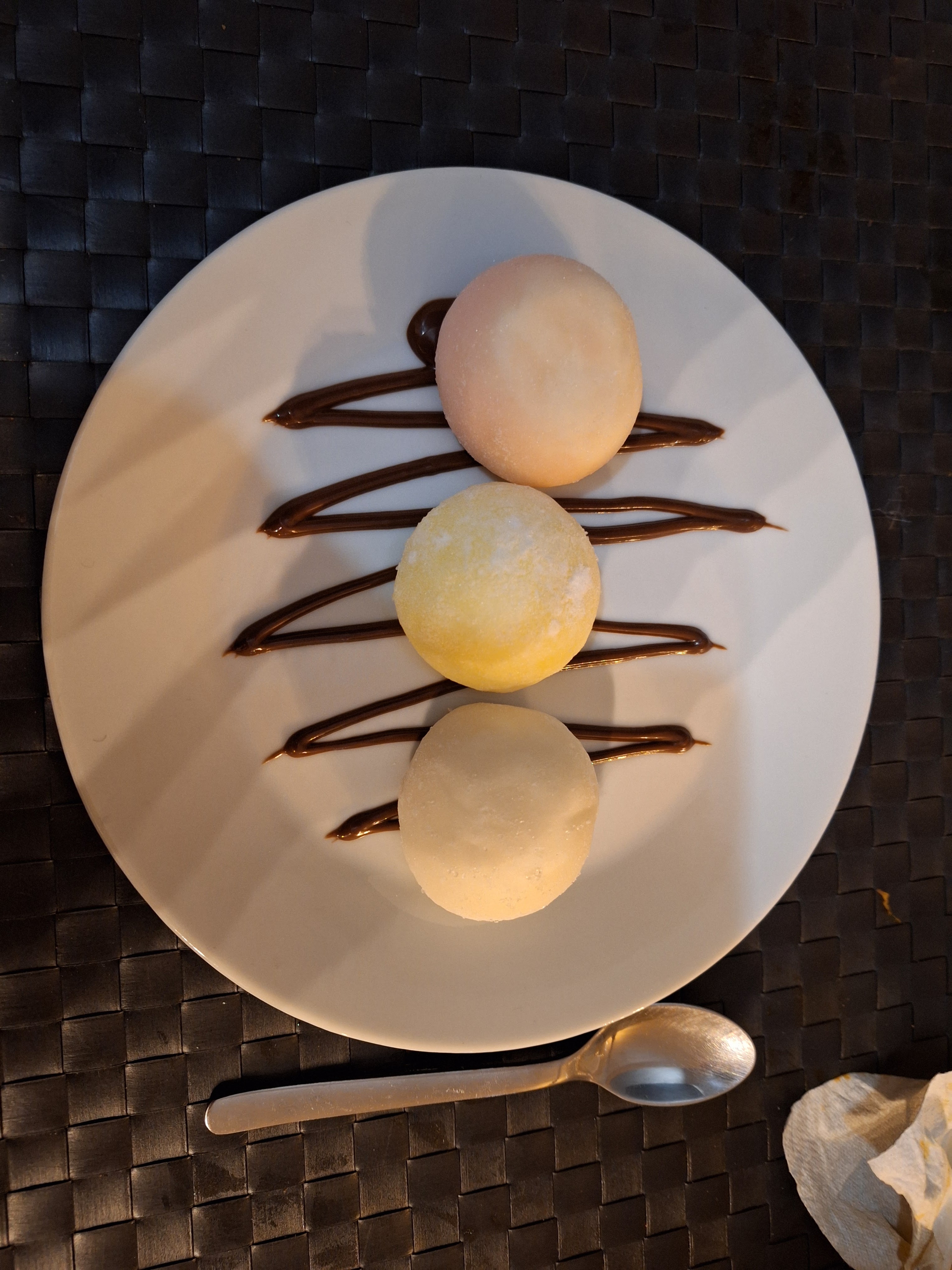 Absolument délicieux. Mon mari qui, habituellement n'aime pas la cuisine chinoise, a énormément apprécié les saveurs délicates, la fraîcheur des légumes du boeuf à la sauce cantonaise accompagné de vermicelles de riz. En dessert mochis glacés 4 parfums au choix (yuzu, thé vert, mangue, litchi) un délice.