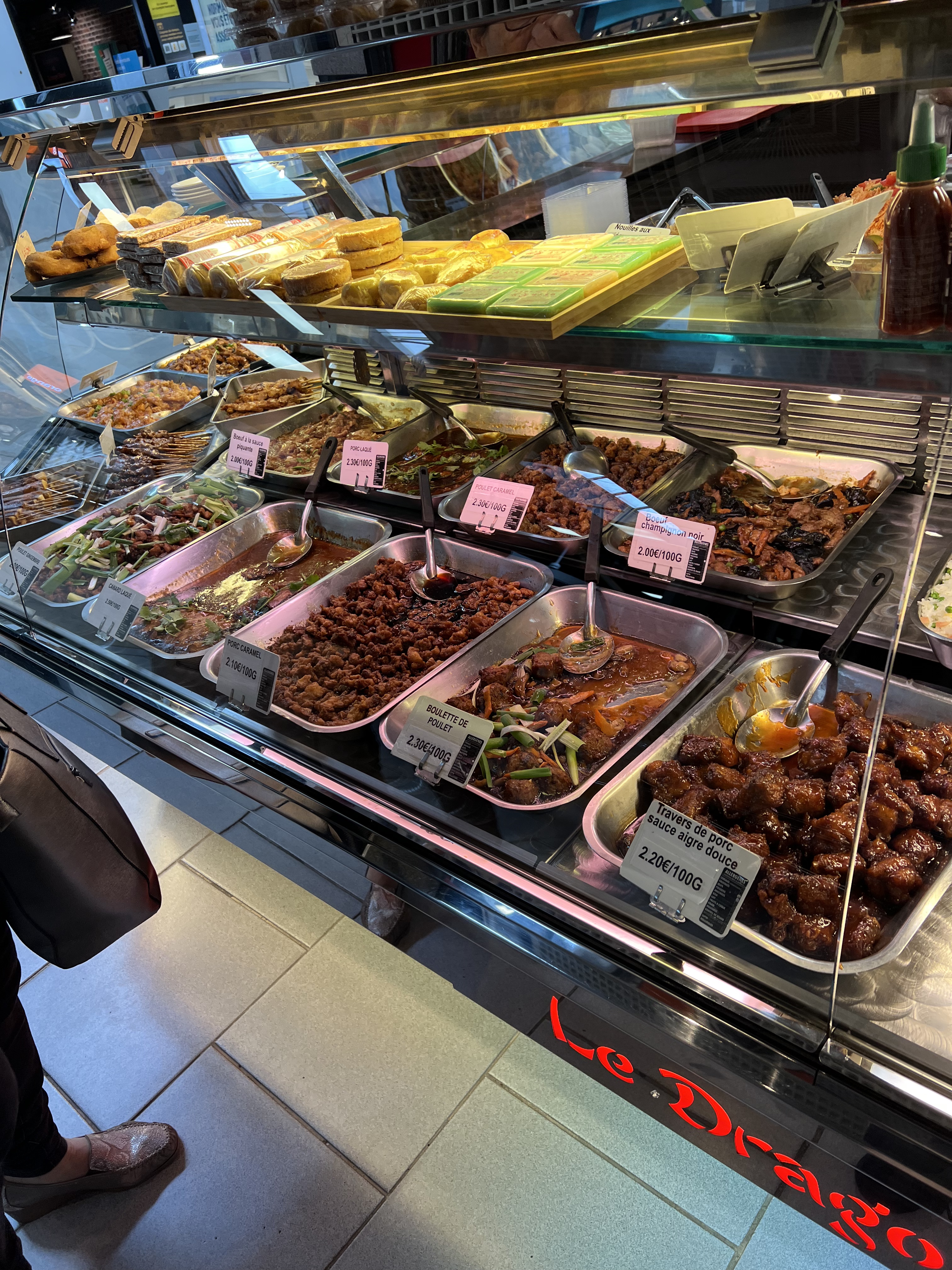 Je prends à emporter à l'occasion de mes courses chez Carrefour, cliente depuis de nombreuses années je constate que la qualité a bien baissé et ce pour tous les plats, beaucoup sont trop salés (poulet basilic par exemple) et certaines sauces compactes (poisson et Saint-Jacques sauce piquante). Comme dit dans certains commentaires ils blindent la barquette, pas très honnête quand on sait que c'est au poids. Faites des efforts avant de perdre tous vos clients.