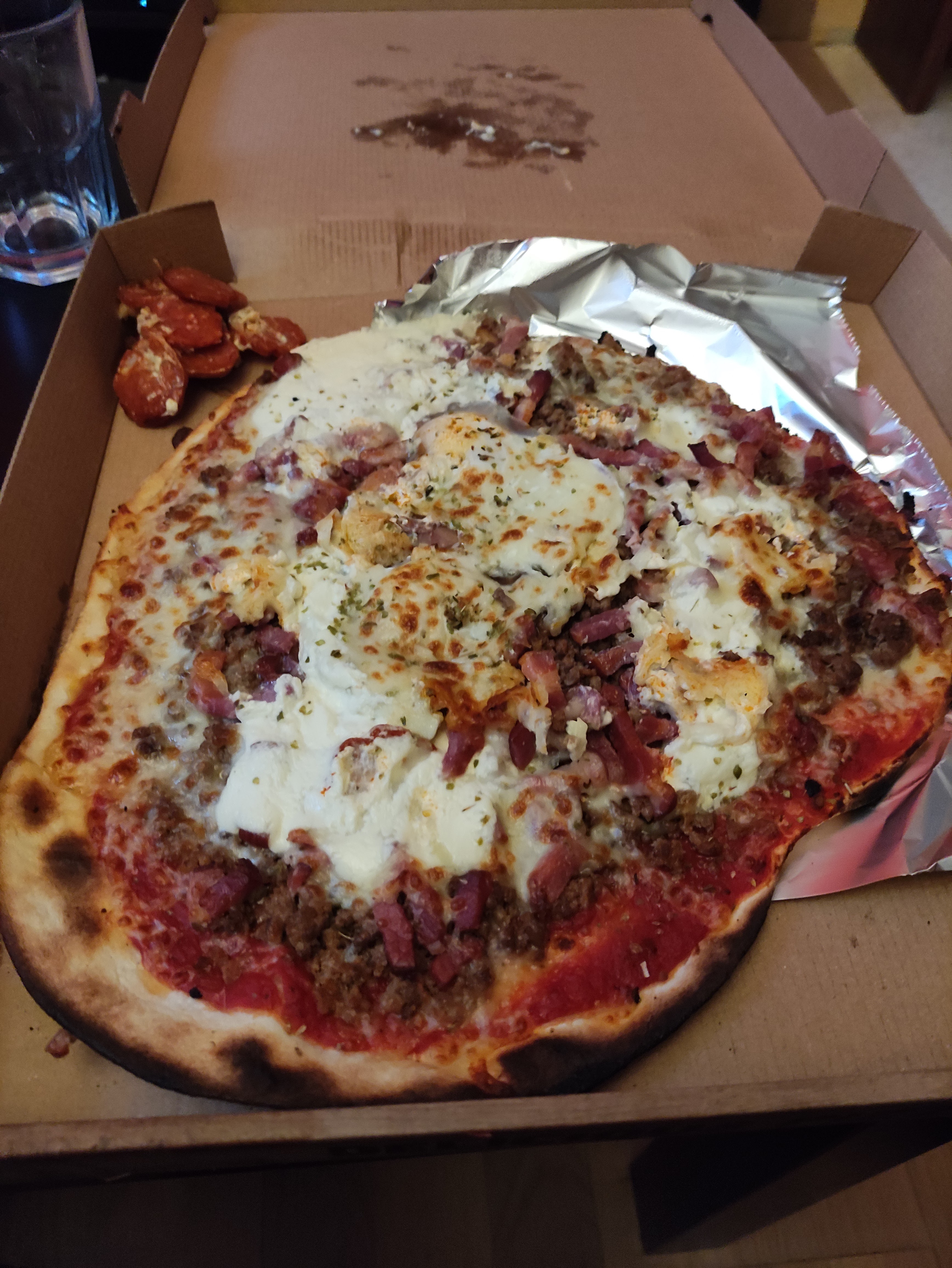 Bonne pizza ! Très copieux, on n'a pas réussi à la finir donc on l'a emporté 😁