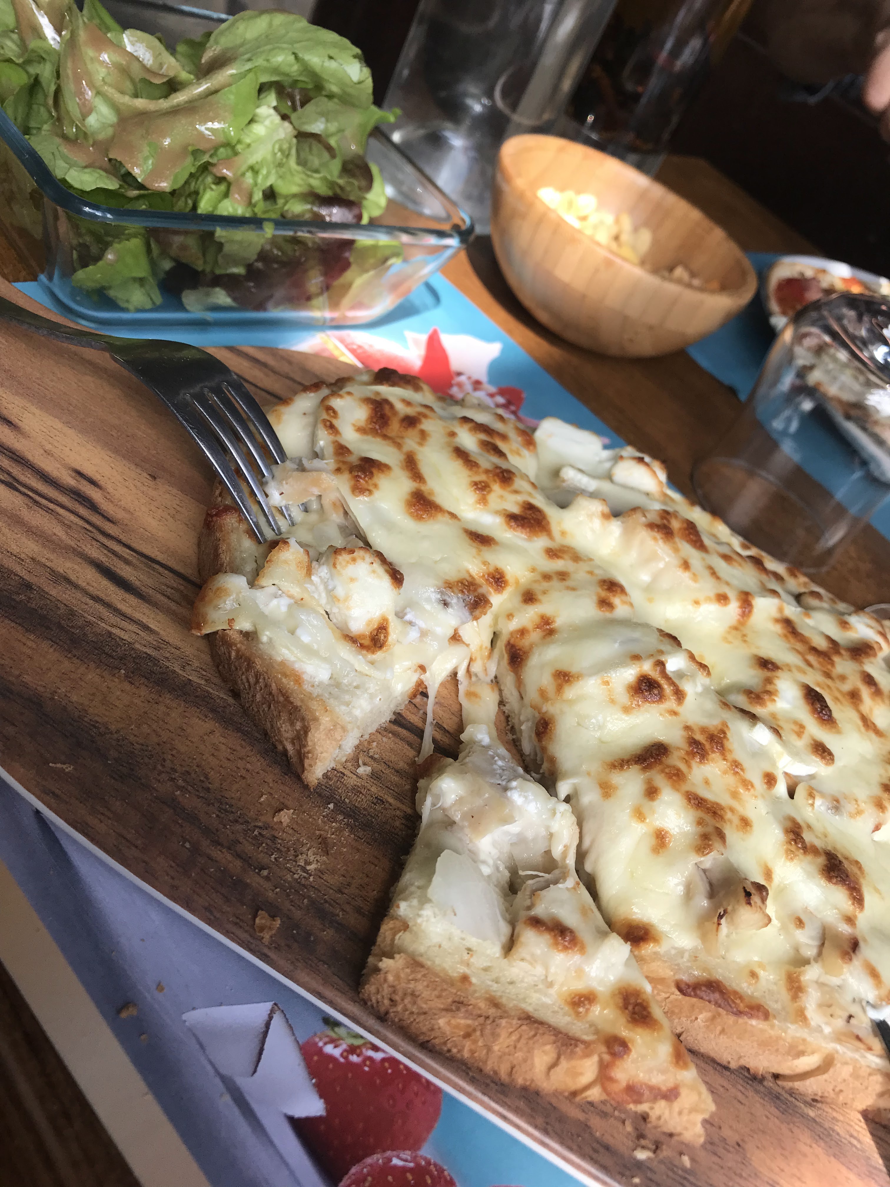 « Pizza » bien garnie et garniture de qualité. Cependant petite interrogation sur la pâte à pizza, j’ai l’impression que n’était pas une pâte a pizza, les pizzas ont énormément dégorgées ce qui a engendré une sous cuisson de la pâte. C’est dommage.