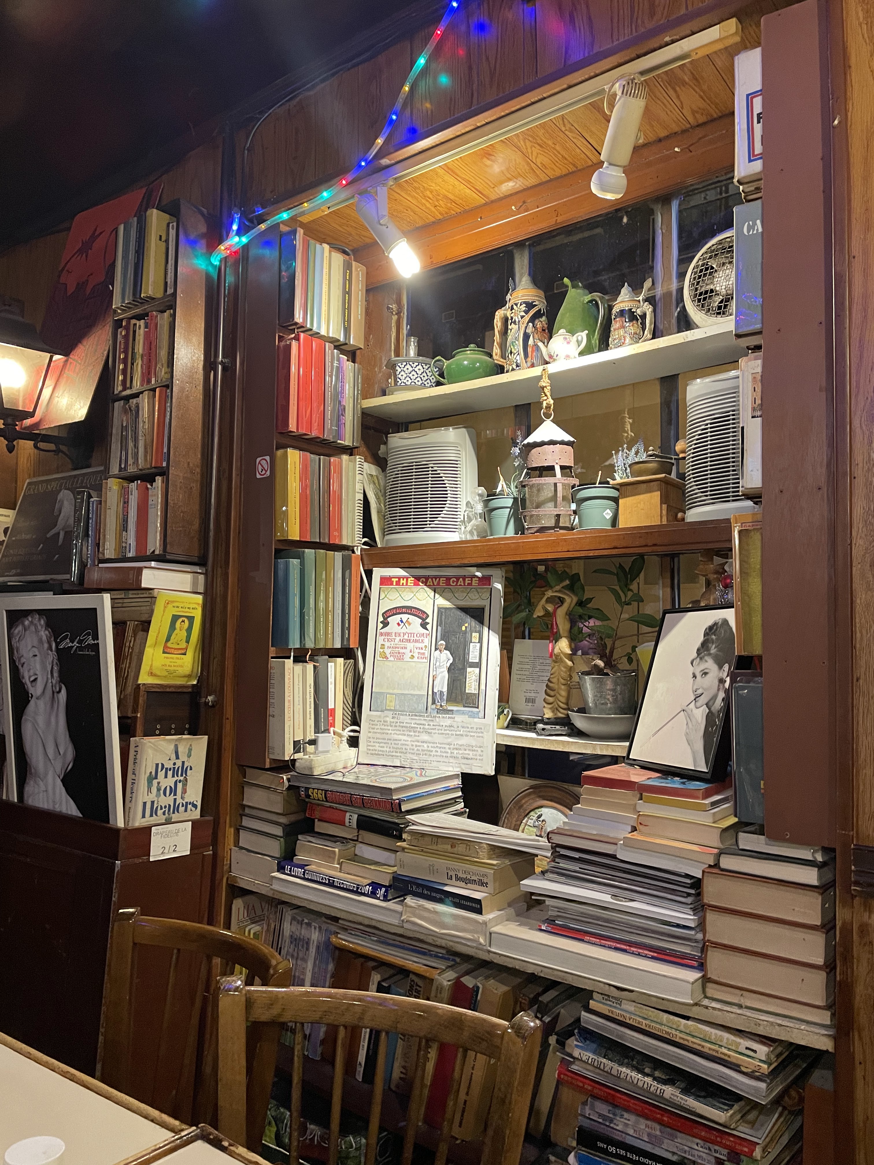 Un endroit vraiment original et atypique. On se croirait dans une petite librairie restée dans les années 40. Et six euros le plat c'est hors compet pour le quartier.