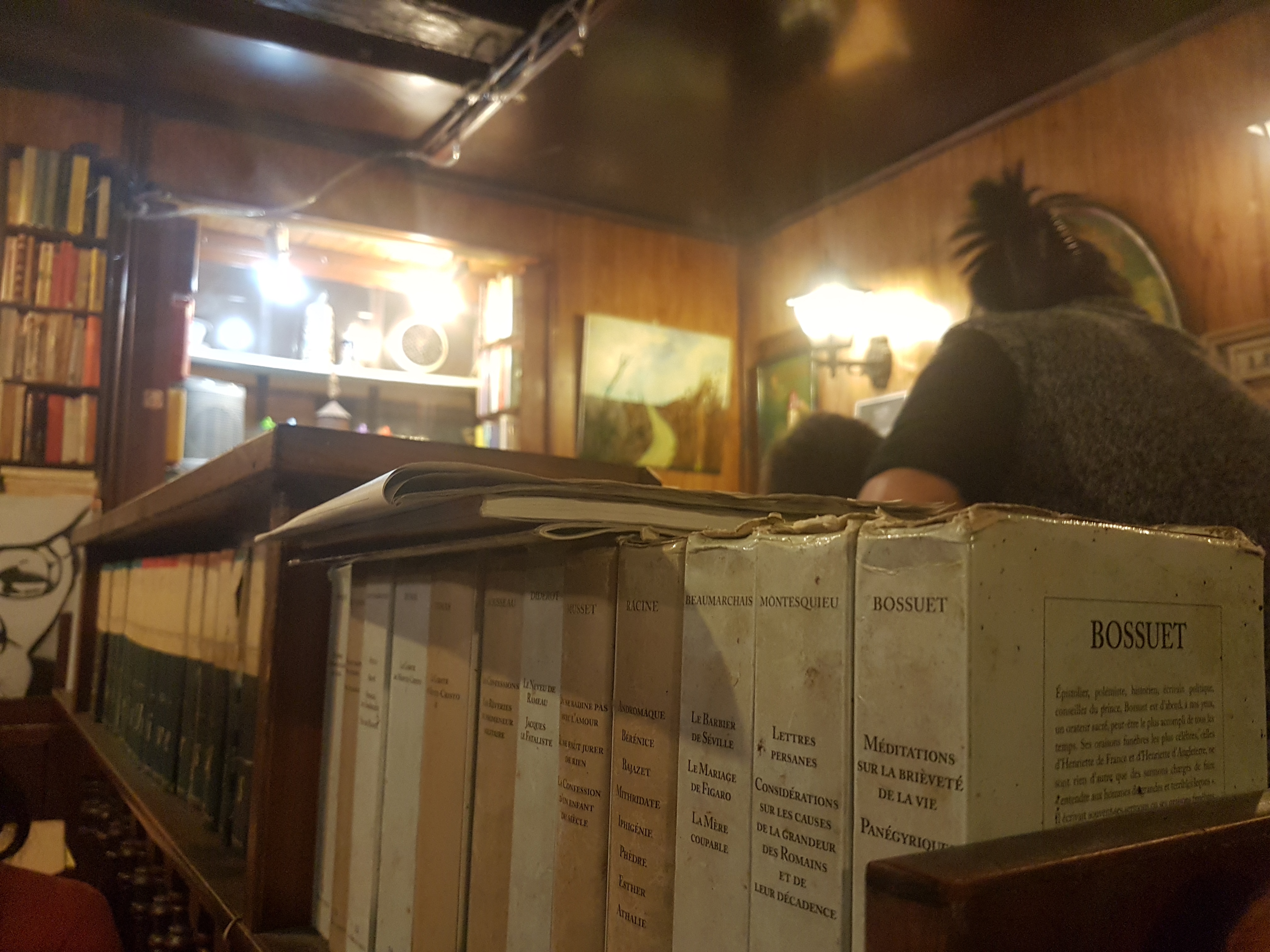 Ambiance chaleureuse entouree de livre Attention a la cuisine qui finit tôt (19h30) Ideal pour bien manger a moindre prix