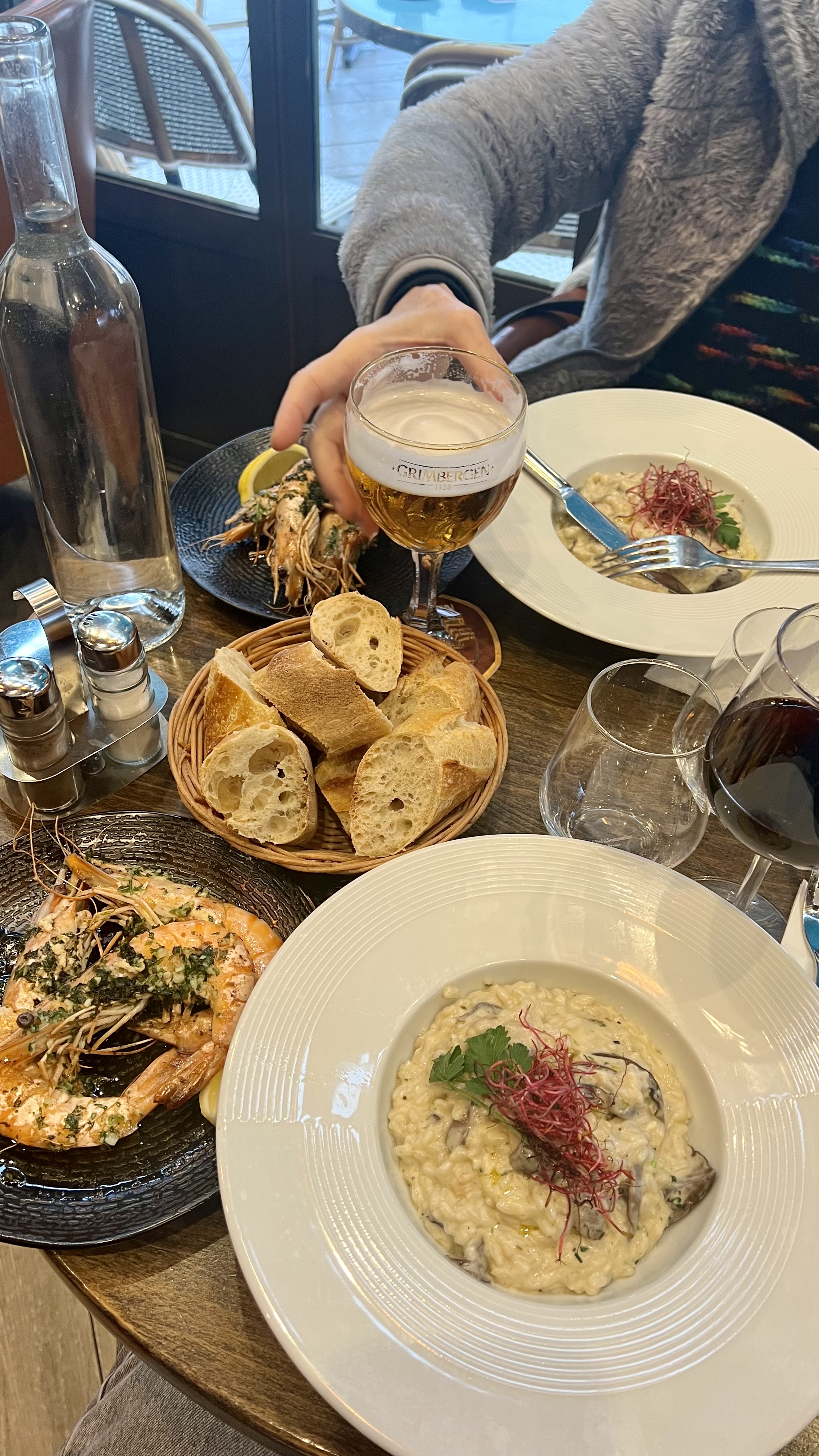 Accueil charmant,avons très bien mangé après balade nocturne au parc floral! La soupe à l oignon était réconfortante..le risotto aux gambas délicieux.Merci pour vos gentillesses avec notre petite fille :)