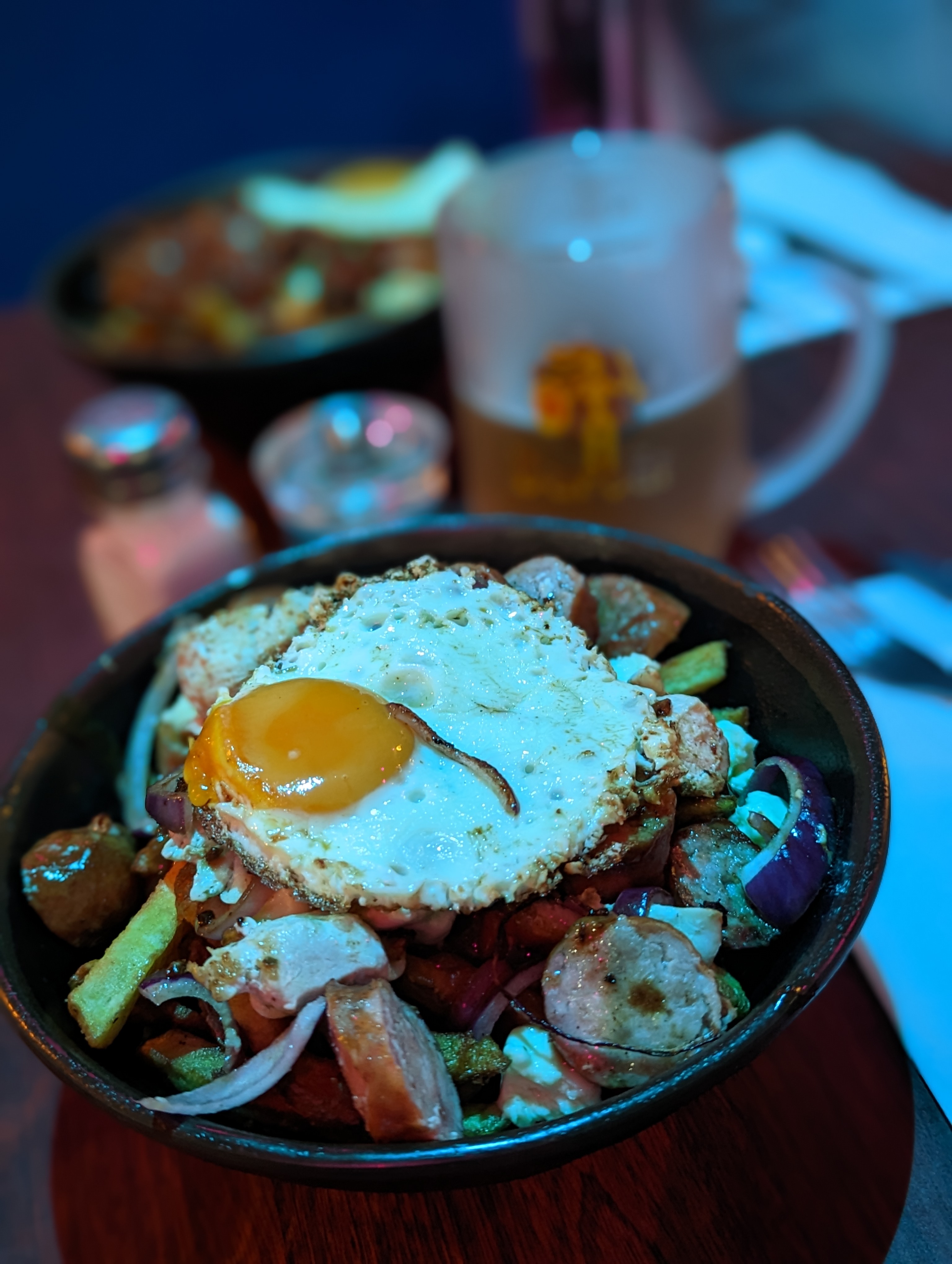 Super endroit avec de bonnes bières, une musique rock au top, qui gagne en intensité dans la journée et au fil de la soirée. Des plats comme ça 👌🏻 Avec, et c'est assez rare pour le préciser, de vraies et bonnes recettes végétariennes qui sont toutes aussi délicieuses et gourmandes que leurs homologues 🥰 Je recommande chaudement 🍻