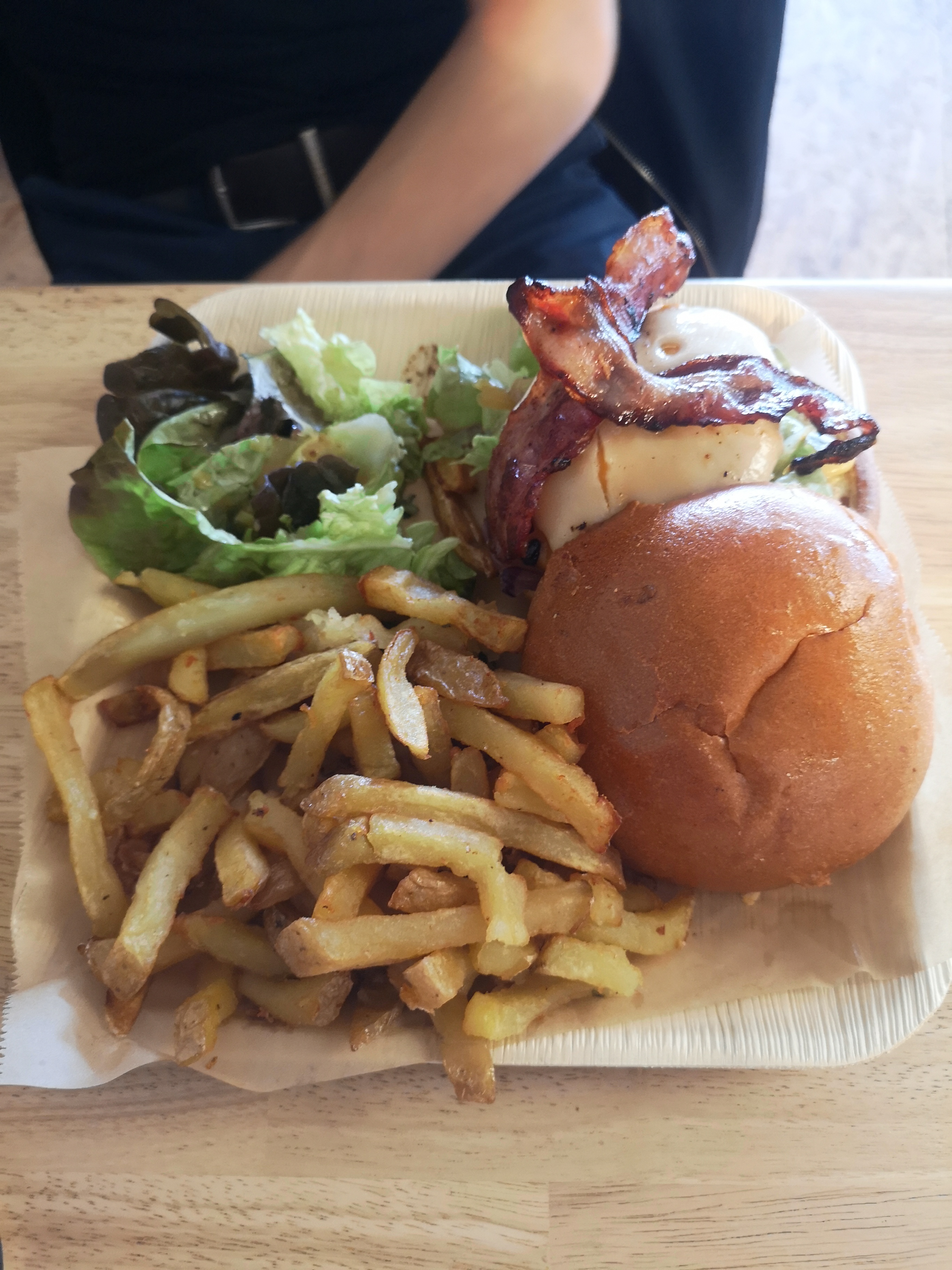 Excellent Burger! Assiette copieuse le Burger est servi avec des frites ainsi que de la salade verte. Beau décor, bonne ambiance, service rapide! Bref allez tester les Burgers 😉
