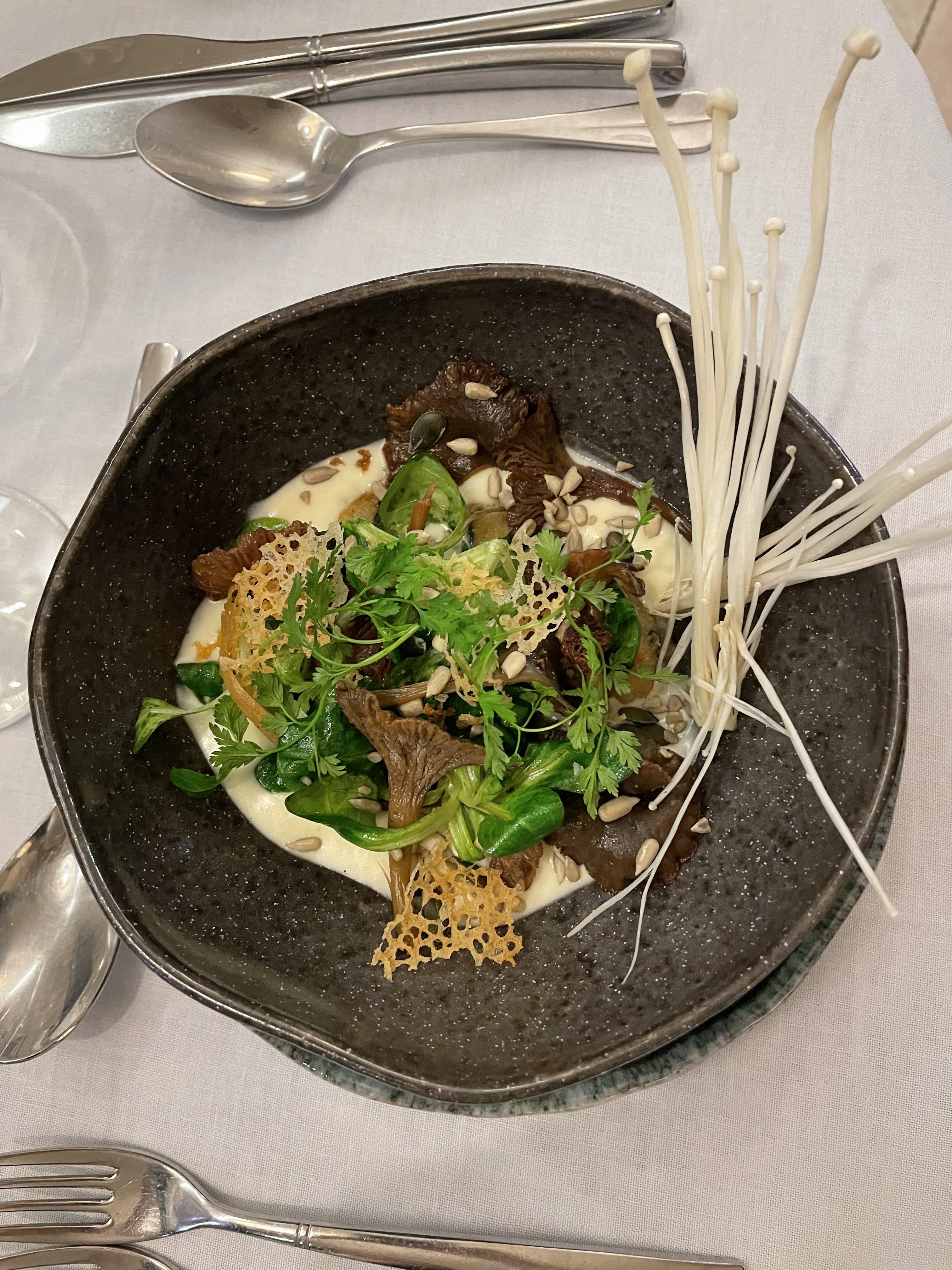 Cadre agréable avec de l'espace. Service au top. Plats agréables à regarder . Beaucoup de saveurs et peu être même un peu trop .On finit par ne plus très bien savoir ce que l'on mange.
