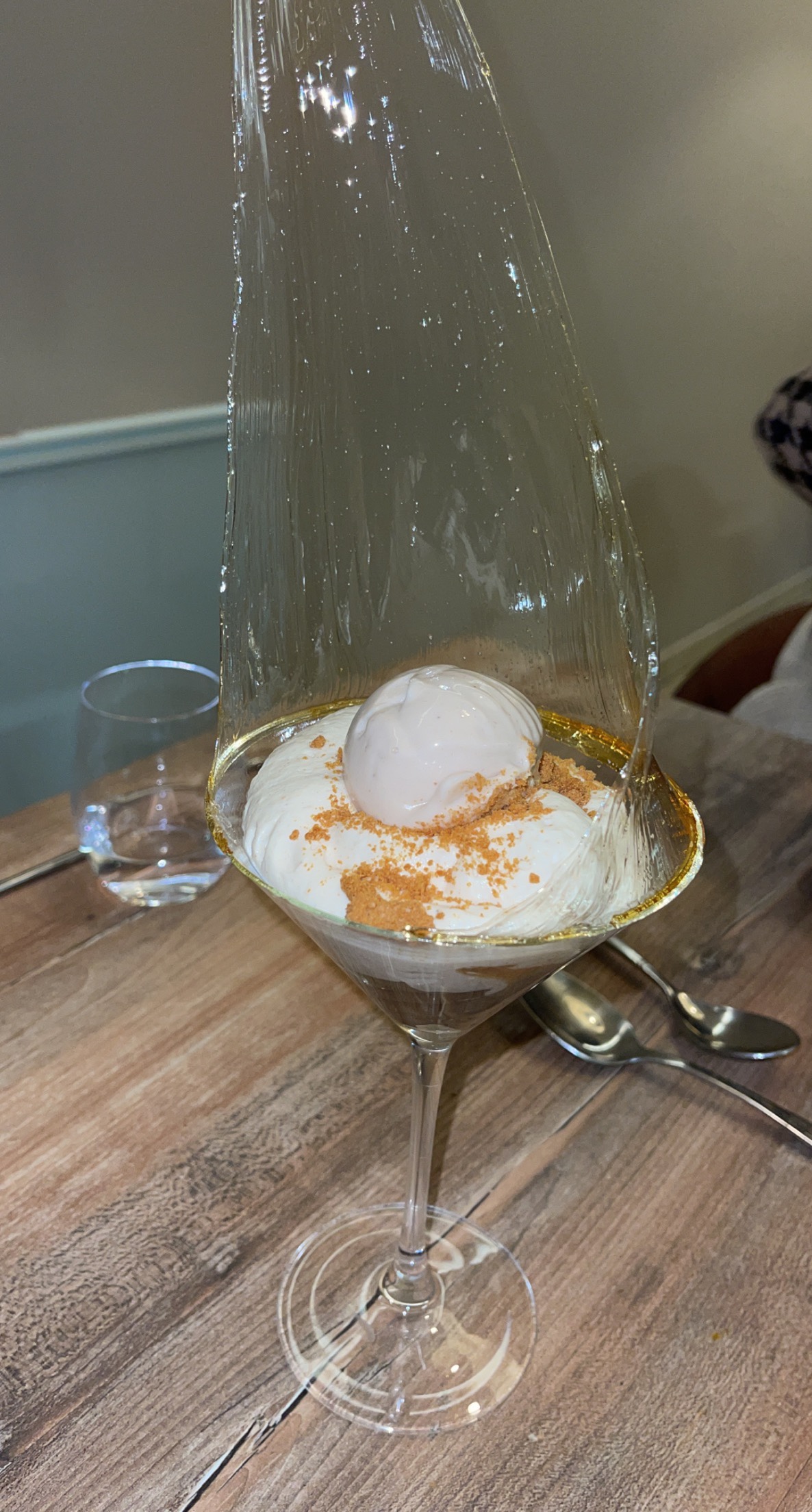 Très bon moment. Le cadre est magnifique. Décoration raffinée et élégante. Les tables ne sont pas les unes sur les autres, c'est appréciable. Les plats proposés sont élaborés, très bien présentés et réalisés. La sphère en chocolat noire fondue par le chocolat chaud fais son petit effet ! Le serveur est très agréable et souriant. Rien à redire. Nous avons passés un très joli moment !