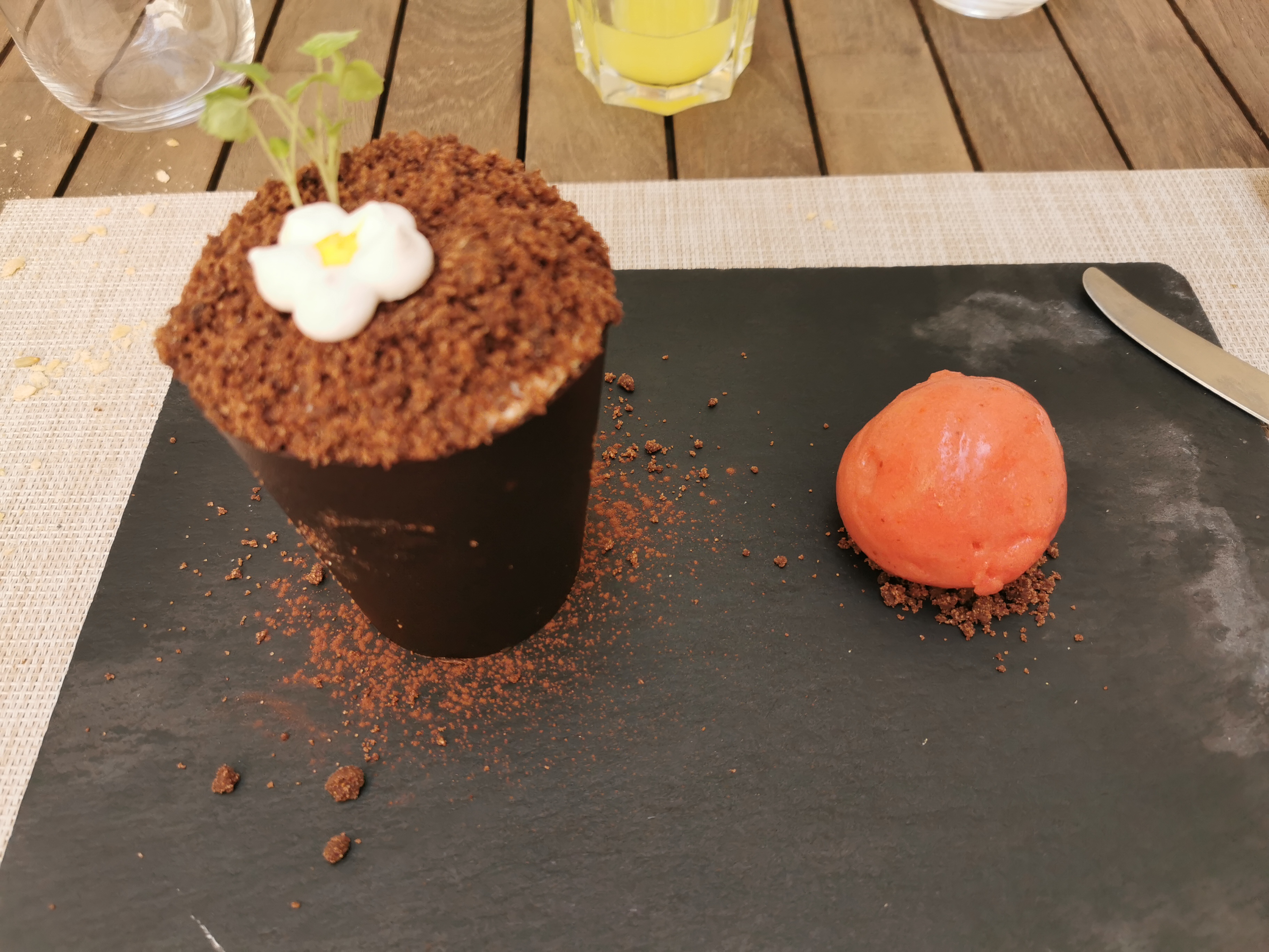 Visite 4 ans après .. en octobre 2022 .. donc … plats soignés.. un petit coup de cœur sur le velouté potimarron … concernant le trio de glace , je l’aurai accompagné par une tuile légère et croquante aux amandes . Des assiettes soignées. Des choix admirablement réfléchies en terme de textures mais aussi de structure.. Des desserts surprenants.. la première fois j' ai retesté deux mois après.. en essayant un nouveau dessert .. un petit peu d insatisfaction ...pour moi , les vrais desserts sont au chocolat noir ..exit le cacao ..mais à chacun ses goûts.